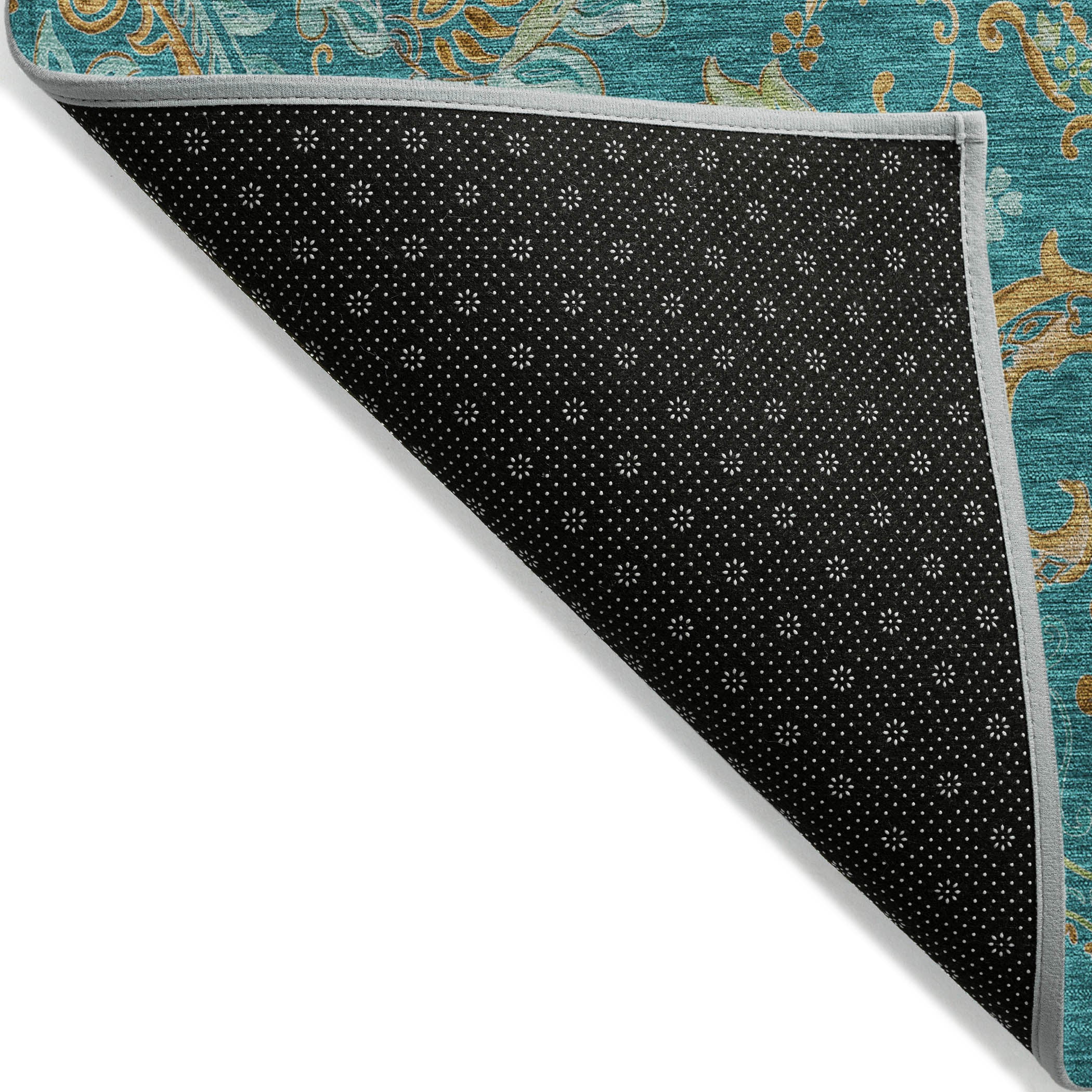 Chantille ACN533 Teal area rug, a stunning addition to any space that effortlessly combines timeless charm with modern style. The intricate teardrop shapes create a captivating focal point, perfect for enhancing any decor. This transitional paisley rug is not only visually appealing but also offers practical benefits. Designed for both indoor and outdoor use, its UV-stabilized colors are fade-resistant and vibrant. The ultra-thin construction includes a non-skid backing for added stability without the need for a separate rug pad. Cleaning is a breeze with its convenient machine-washable feature, making it ideal for busy households with pets and kids. Upgrade your home with this family-friendly and durable rug that can withstand the rigors of daily life.
