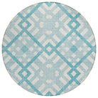 Introduce a touch of sophistication to your living space with the Chantille ACN616 Teal rug. Featuring an eye-catching geometric pattern of interlocking squares and floating shapes, this transitional rug effortlessly blends classic elegance with modern flair. Its UV-stabilized construction ensures durability, making it suitable for both indoor and outdoor use. The ultra-thin design and integrated non-skid backing provide stability without the need for an additional rug pad, while its machine-washable nature offers convenience for busy households with pets and children. Elevate your decor with this versatile and stylish rug that combines practicality with aesthetic appeal.