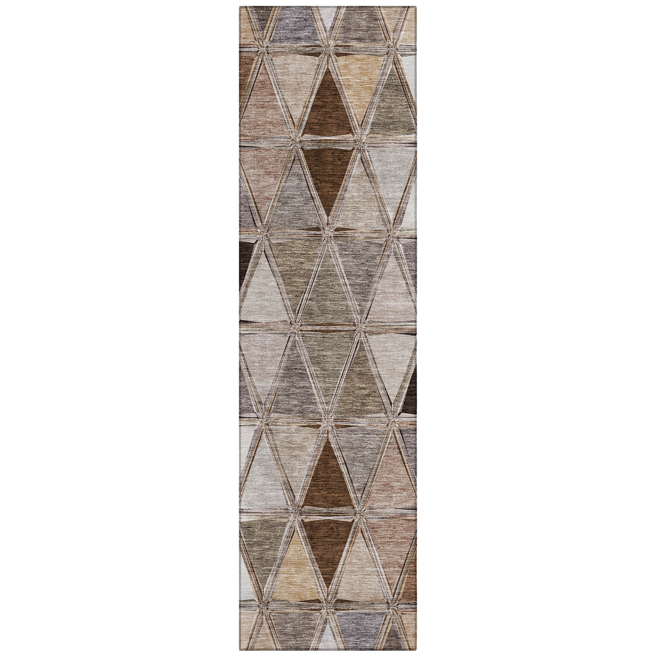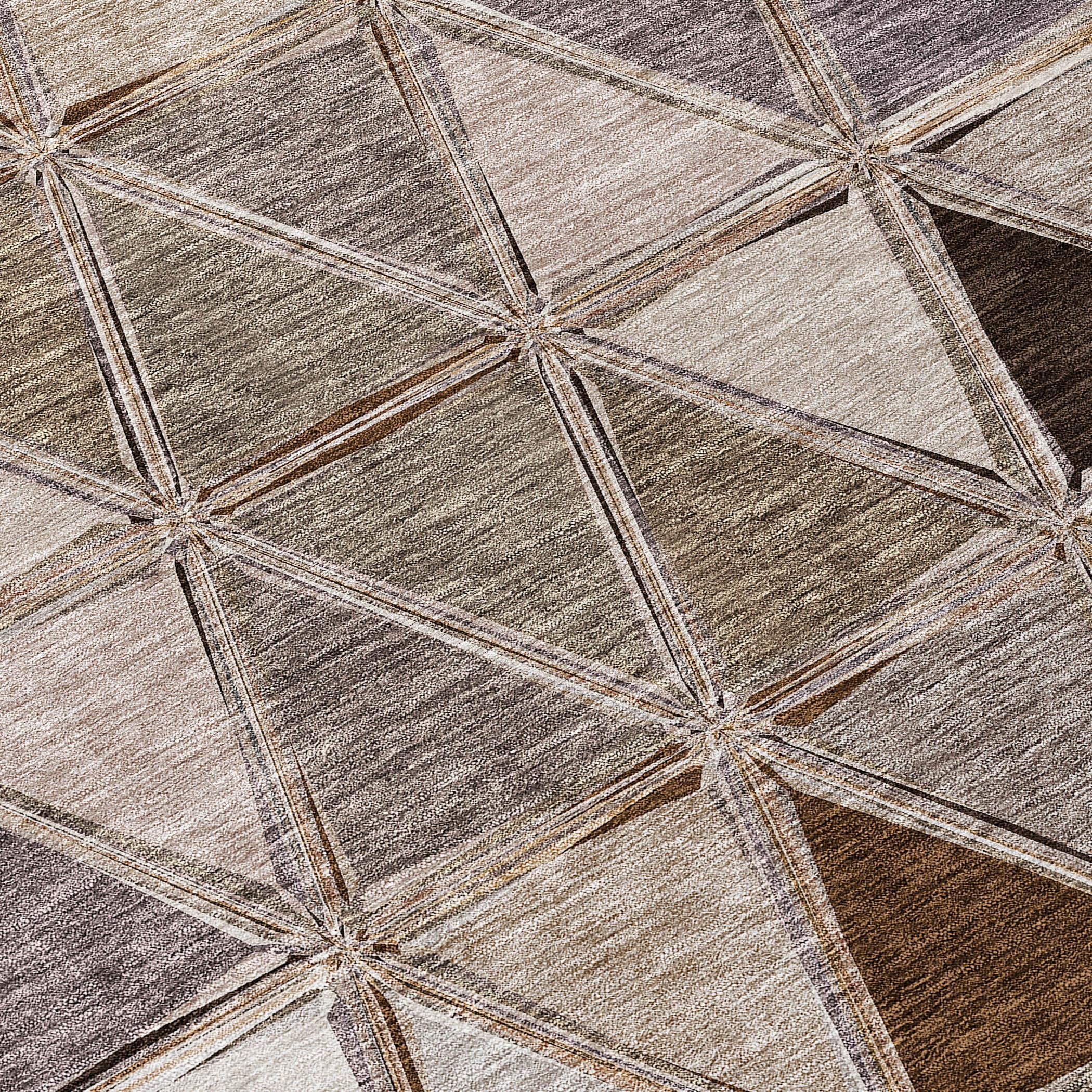 Chantille ACN722 Brown rug, where geometric elegance meets practical luxury. This rug features a unique design of triangles in a horizontal bar, bringing a touch of transitional charm to any space. Its UV stabilized construction makes it suitable for both indoor and outdoor use, ensuring long-lasting beauty. The slim profile includes a built-in non-skid backing, eliminating the need for an additional rug pad.