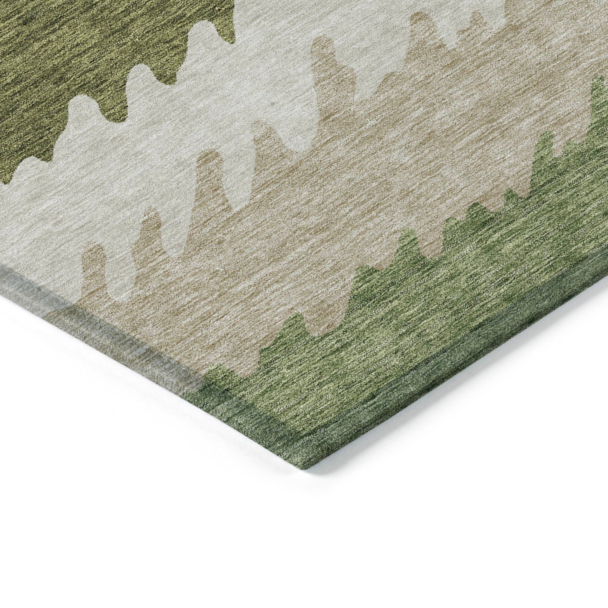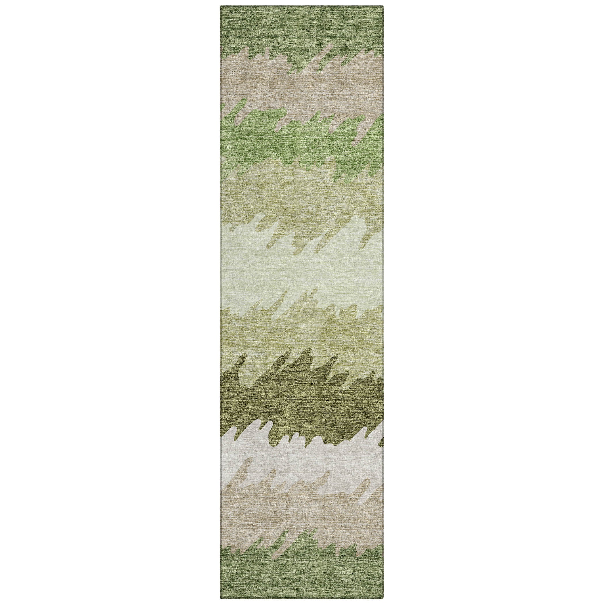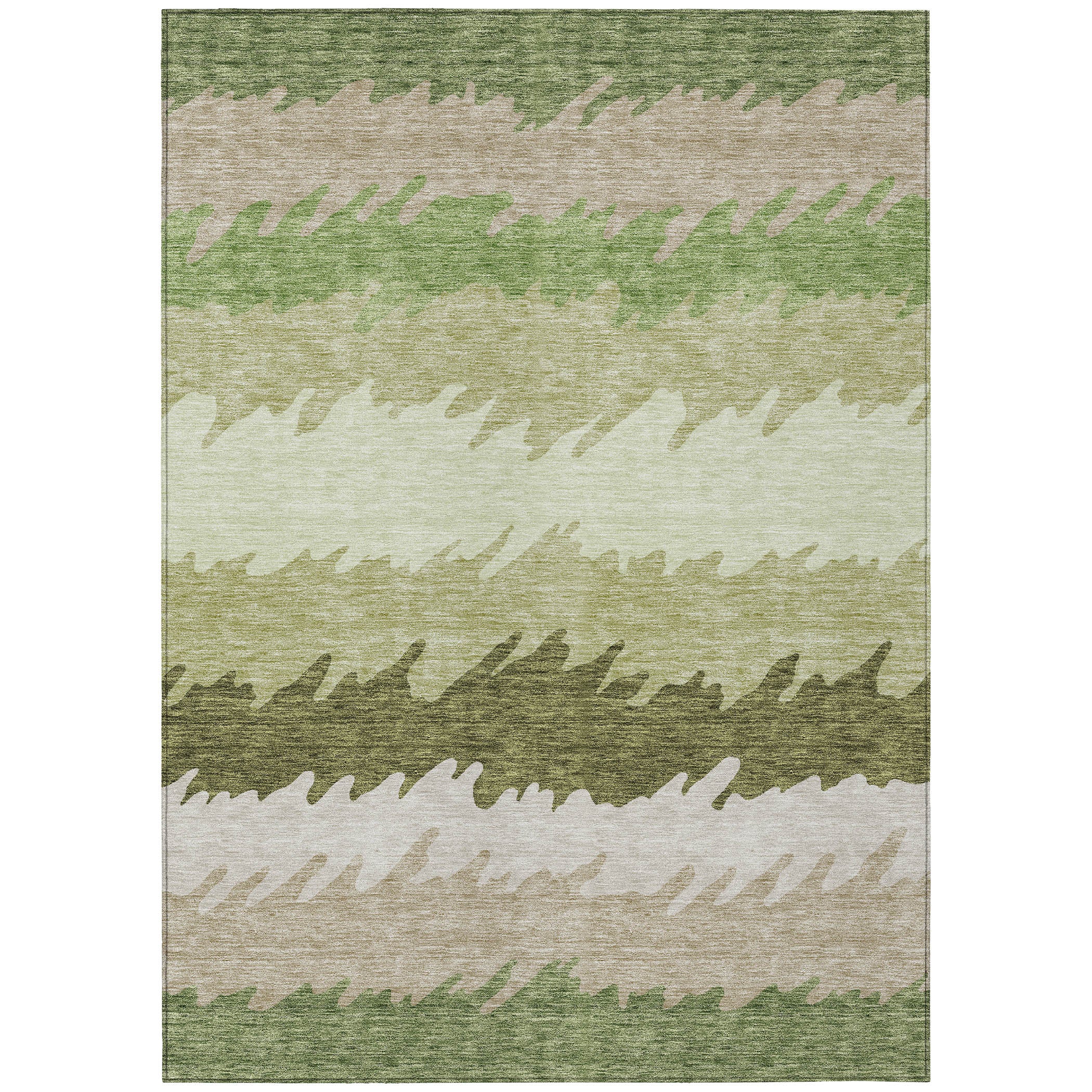 Chantille ACN736 Green rug, a perfect blend of transitional style and modern design. The large irregular horizontal stripes create a dynamic and vibrant look that will enhance any space. The unique stripe pattern adds movement and energy to your room, making it a focal point in your home.