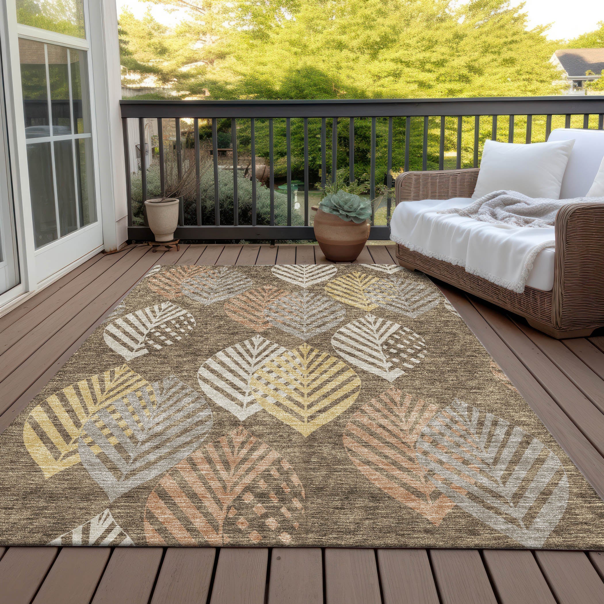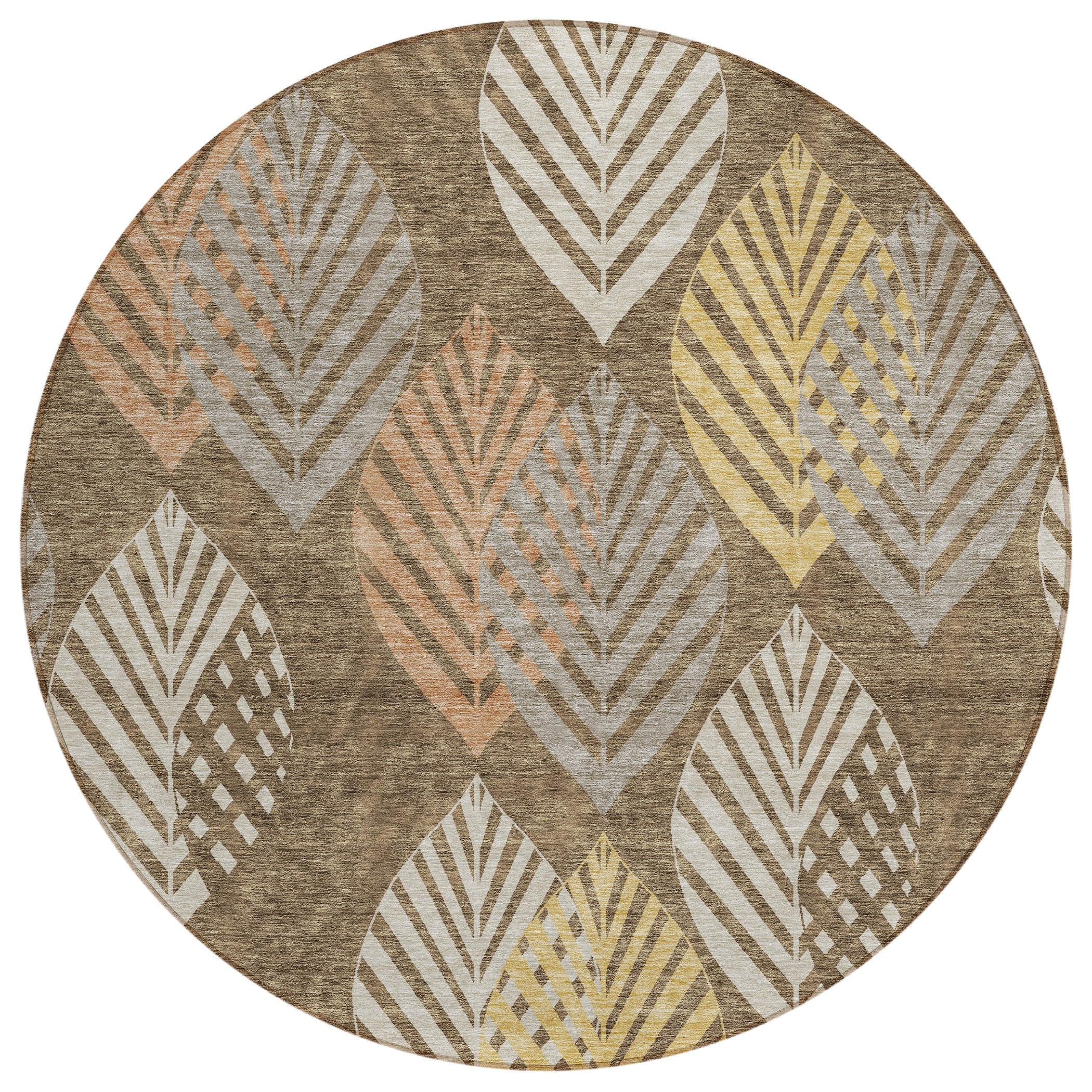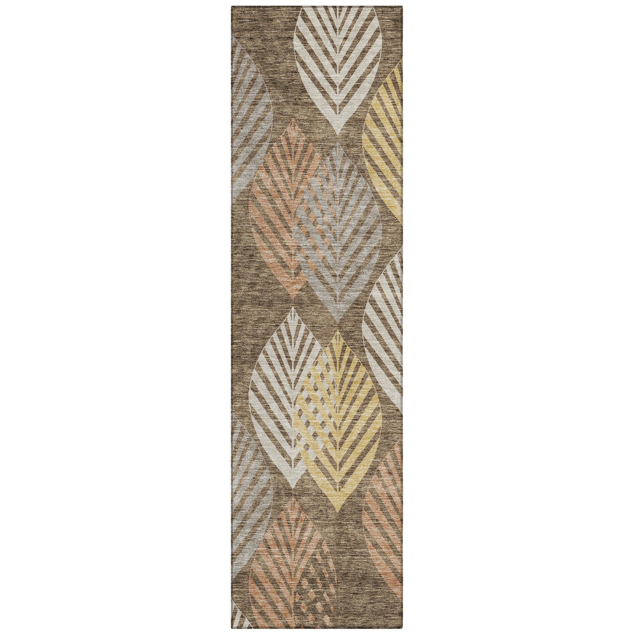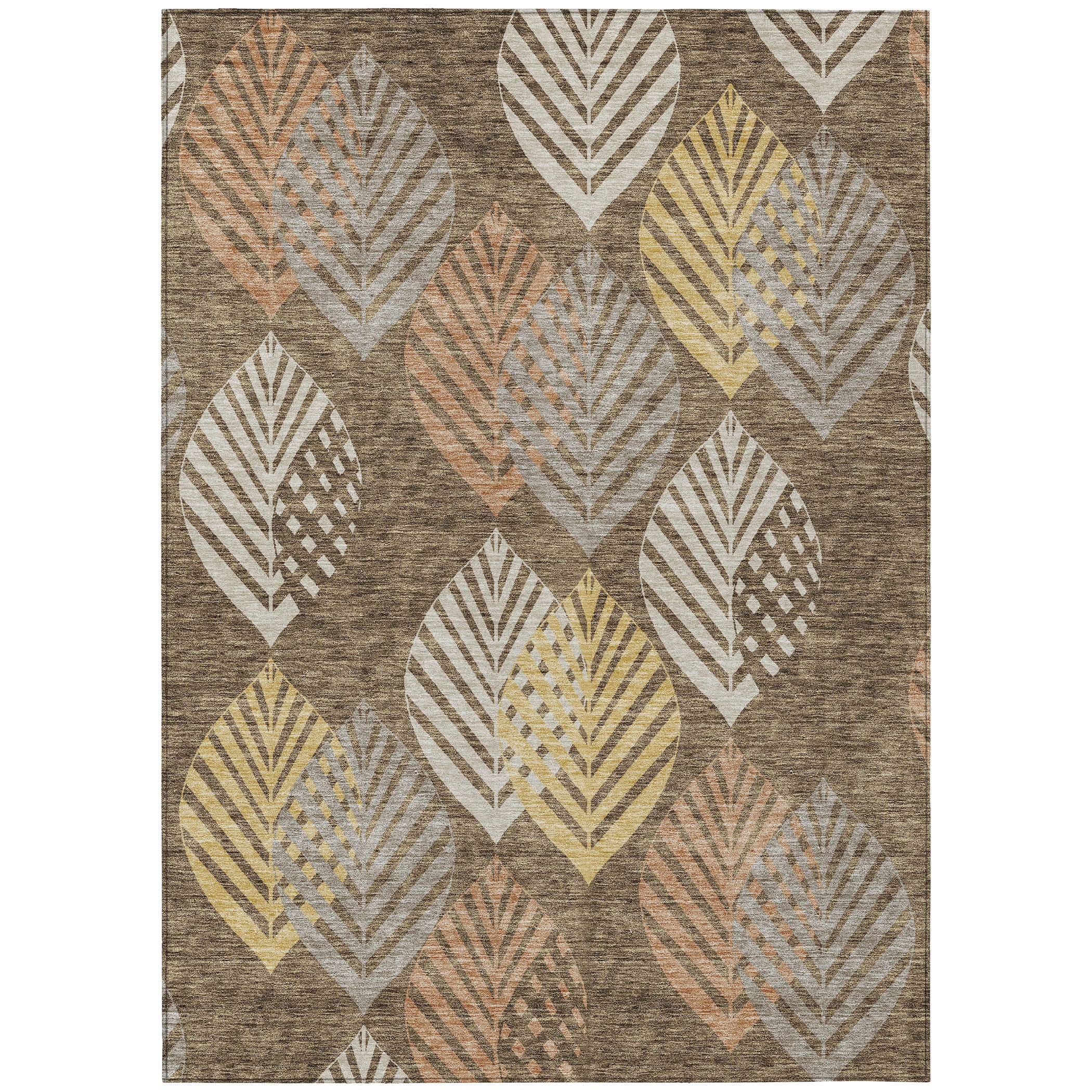 Chantille ACN744 Chocolate rug, a stunning piece featuring an intricate pattern of vertical leaves that bring a touch of nature into your space. The design seamlessly blends traditional and modern styles, creating a unique and elegant look with a floral twist.