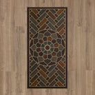 elegant Ornamental Grain Chestnut, a chic addition to your home's entryway. This doormat features a contemporary herringbone and floral medallion design, creating a sophisticated and welcoming atmosphere for your guests. Crafted with a woodgrain-inspired texture, this classic piece from Mohawk Home's Ornamental Entry Collection exudes timeless charm.