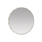 We elevated a classic round mirror by framing it in antique brass iron and adorned with white marble baubles. Reminiscent of a jewelry bezel on the band of a ring, the minimalist form is secured with a cleat at the back for hanging. Finish will vary.