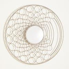 Our Loop Mirror gets its name from the gold finished iron frame that surrounds the glass mirror that features conjoined circles or "loops". This mirror features a 12" reflective surface and hangs on a cleat that is provided.