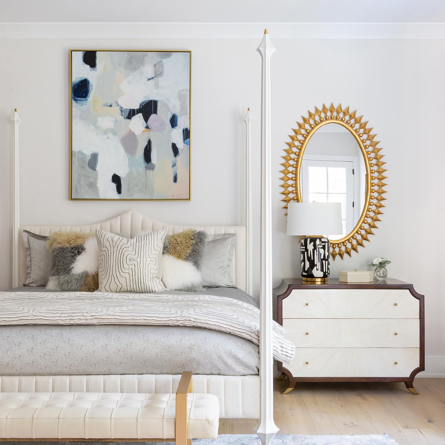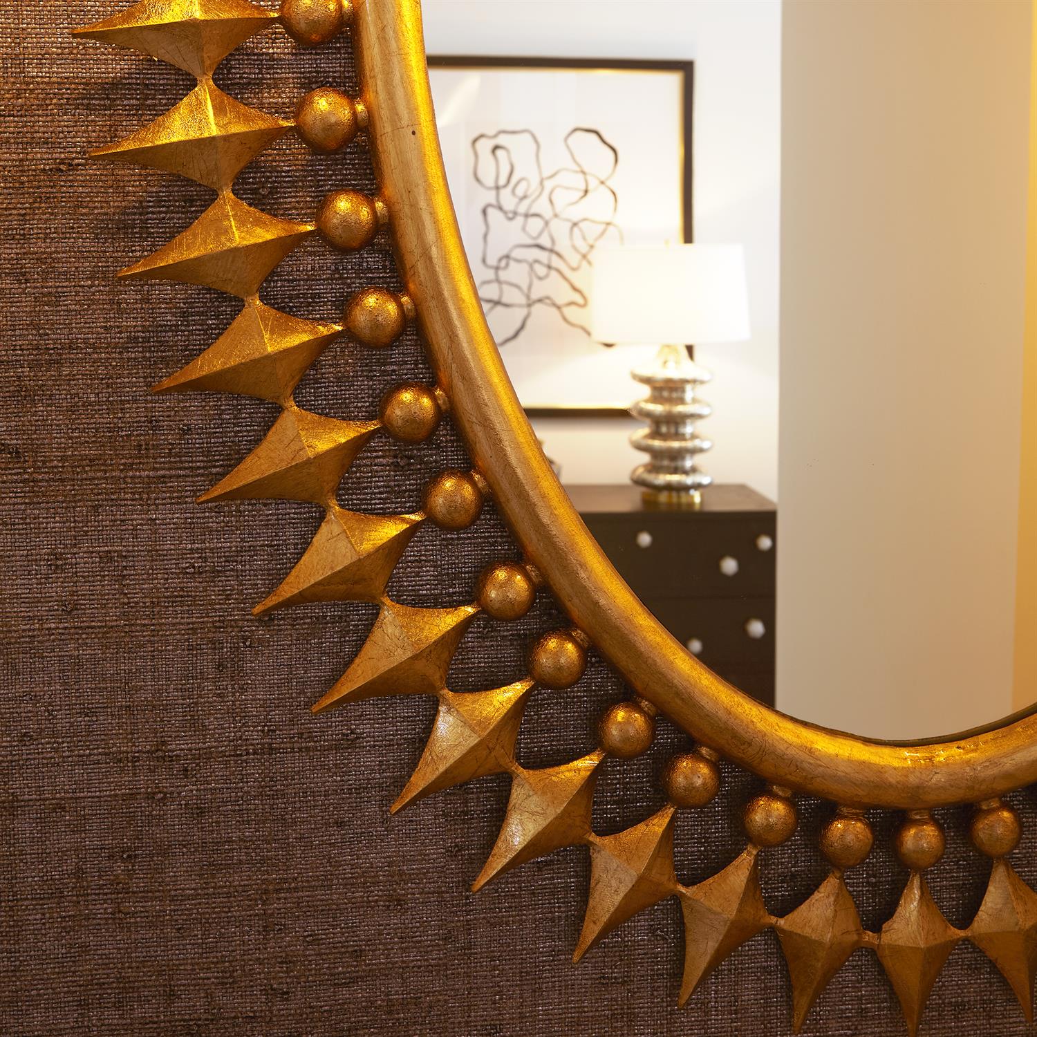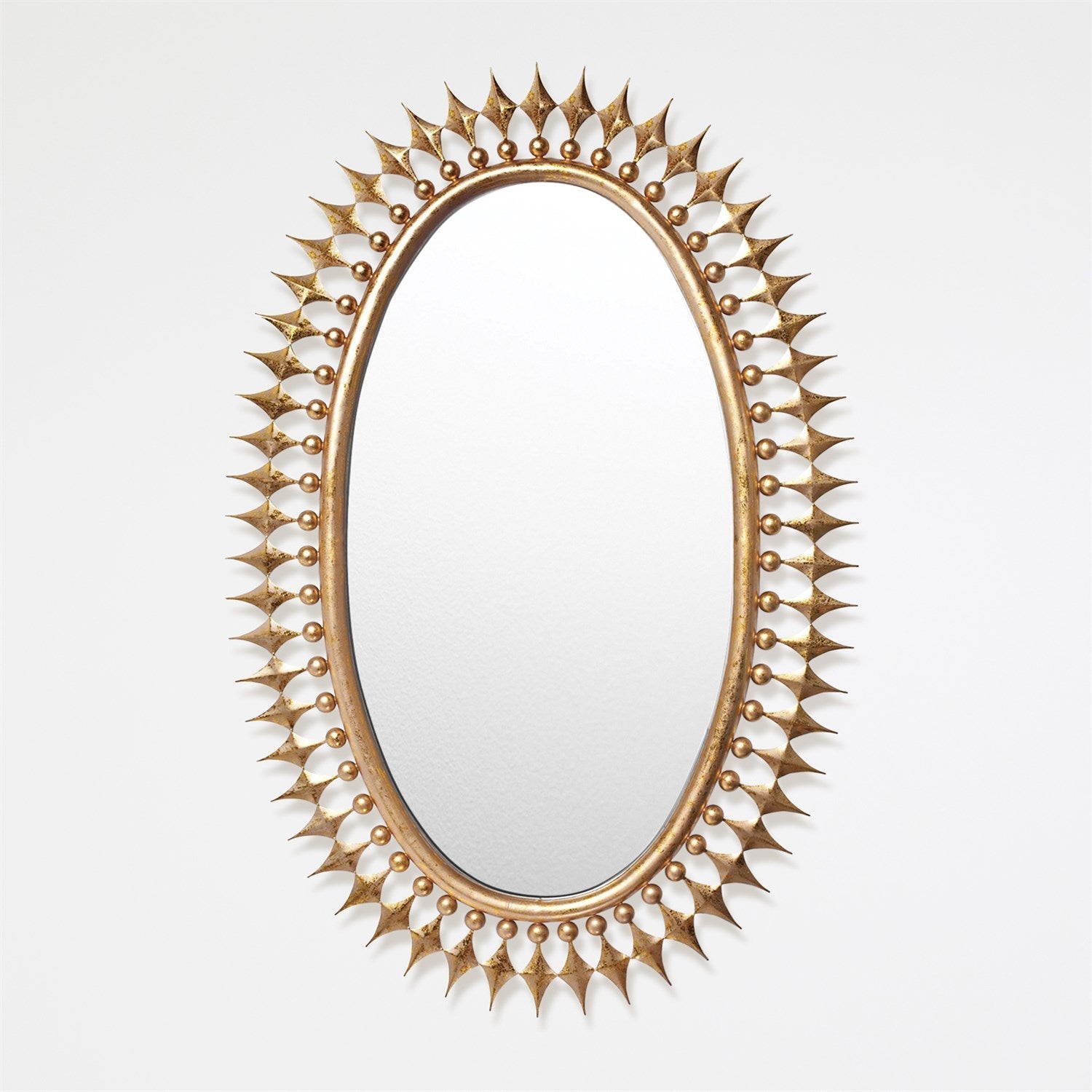 Our Wellington Mirror is one of our best sellers for a reason, its oval metal frame makes a statement with it's large size and unique details. The frame is accented with a hand gilded gold leaf finish to bring next level beauty to any space.