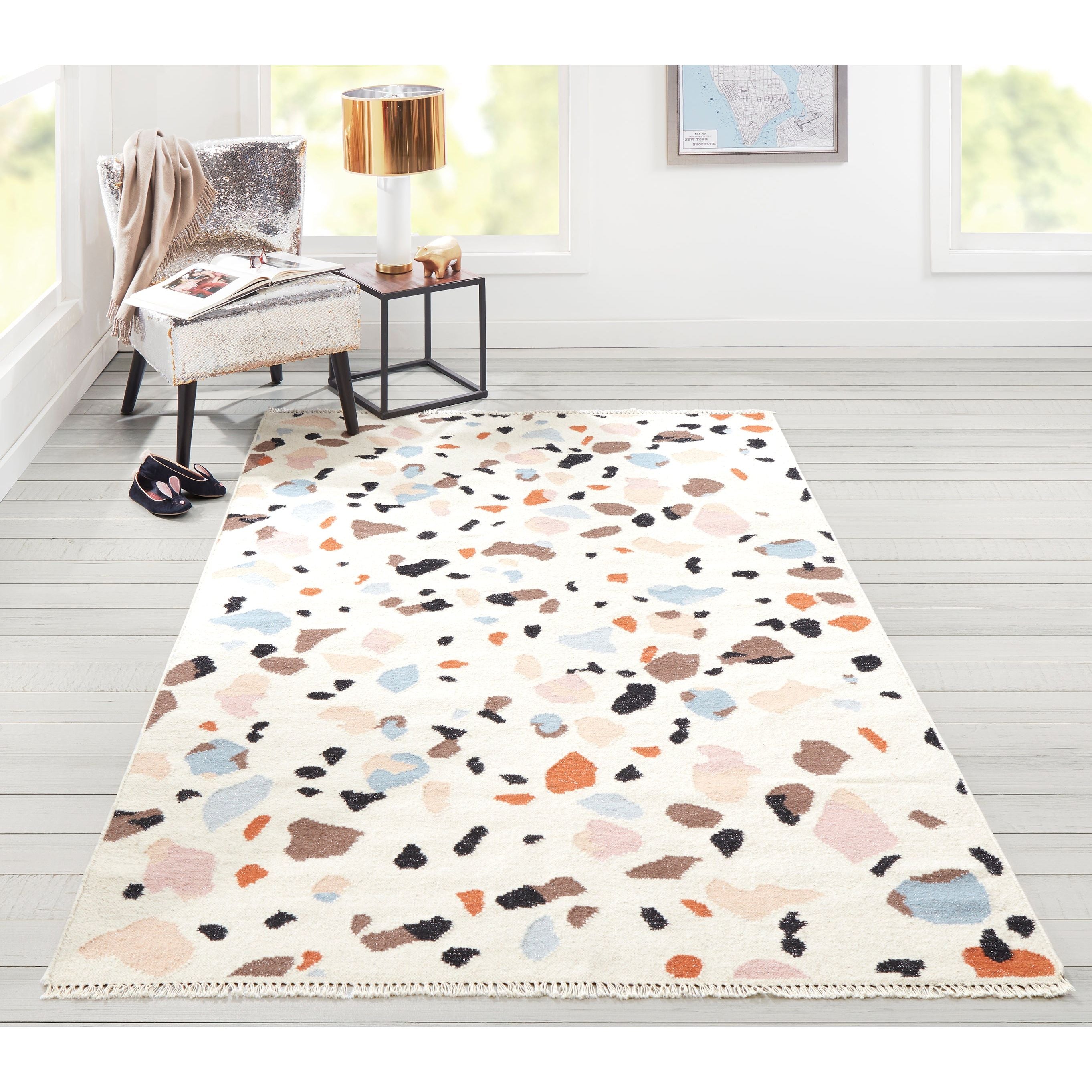 Jem Jem 2 Ivory from our vibrant Jem collection. This stylish rug is designed to bring a touch of fun into your space while maintaining exceptional quality. The trendy patterns are perfect for adding a lively flair to any room that needs a little extra personality. Crafted with premium materials, this rug features Lurex fibers that give it a subtle sheen, adding depth and dimension to the eye-catching patterns.
