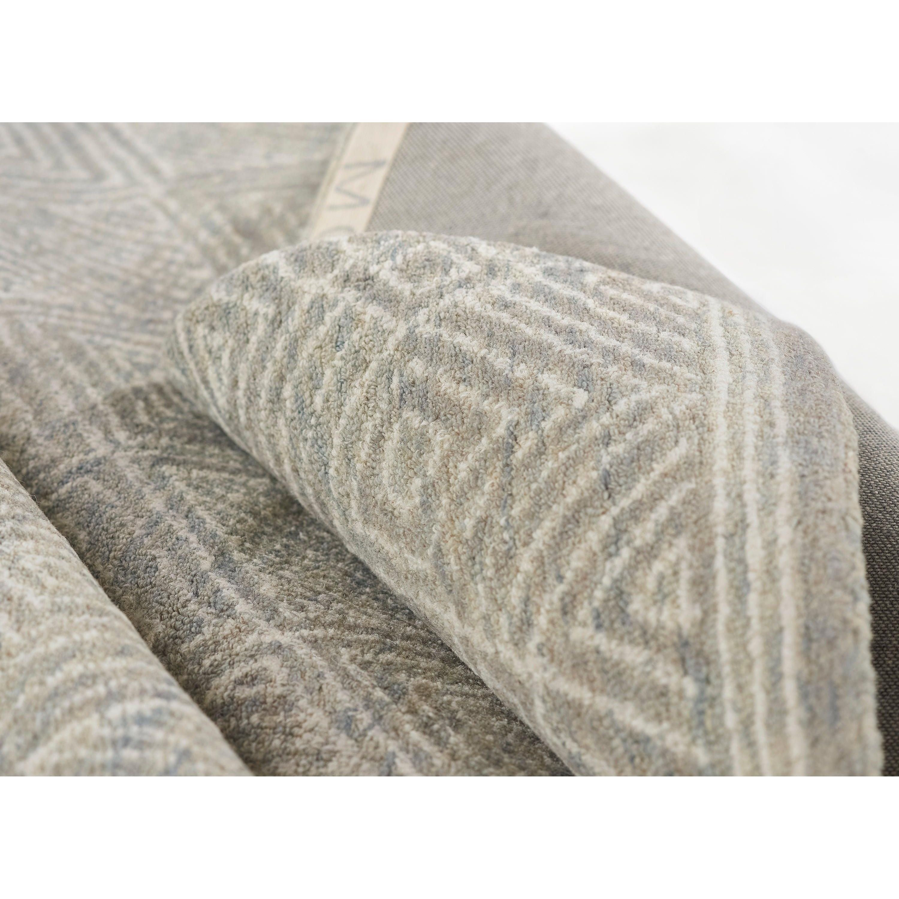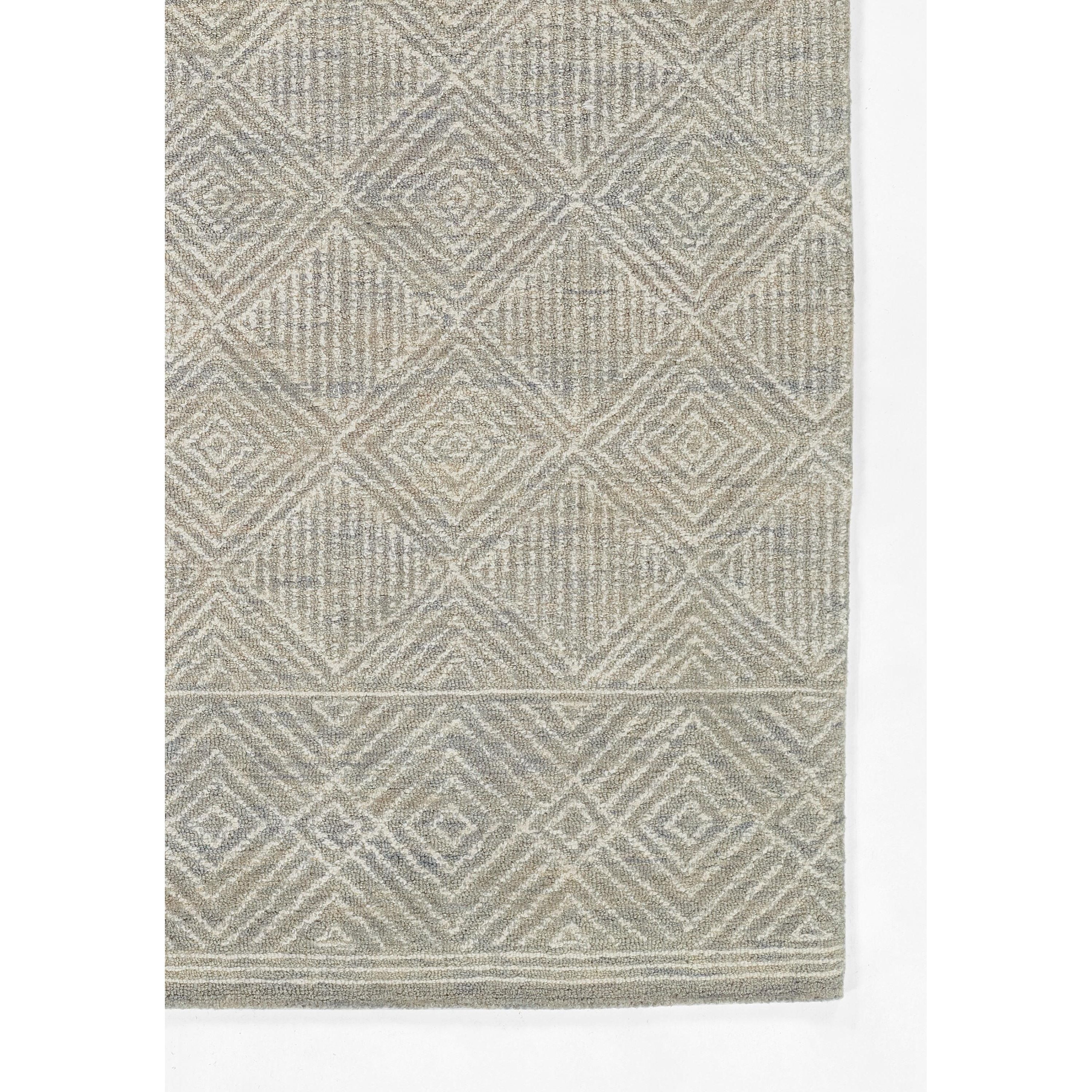 Mallorca Mrc 7 Grey rug, a stylish addition to any urban bohemian decor. Its neutral shades of taupe, green, and grey create a cool and versatile look that complements various interior color schemes. Crafted from natural wool fibers, this tribal area rug features intricate hand-hooked loop designs in elaborate geometric patterns for an artful touch.