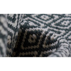 River Riv 4 Slate, a unique decorative area rug that adds a touch of tribal charm to any space. The rug features a traditional diamond trellis pattern with bold stripes in black, blue, yellow, and orange colors. Hand-woven using synthetic fibers, this rug is not only eye-catching but also durable enough to withstand high foot traffic in various areas of your home.