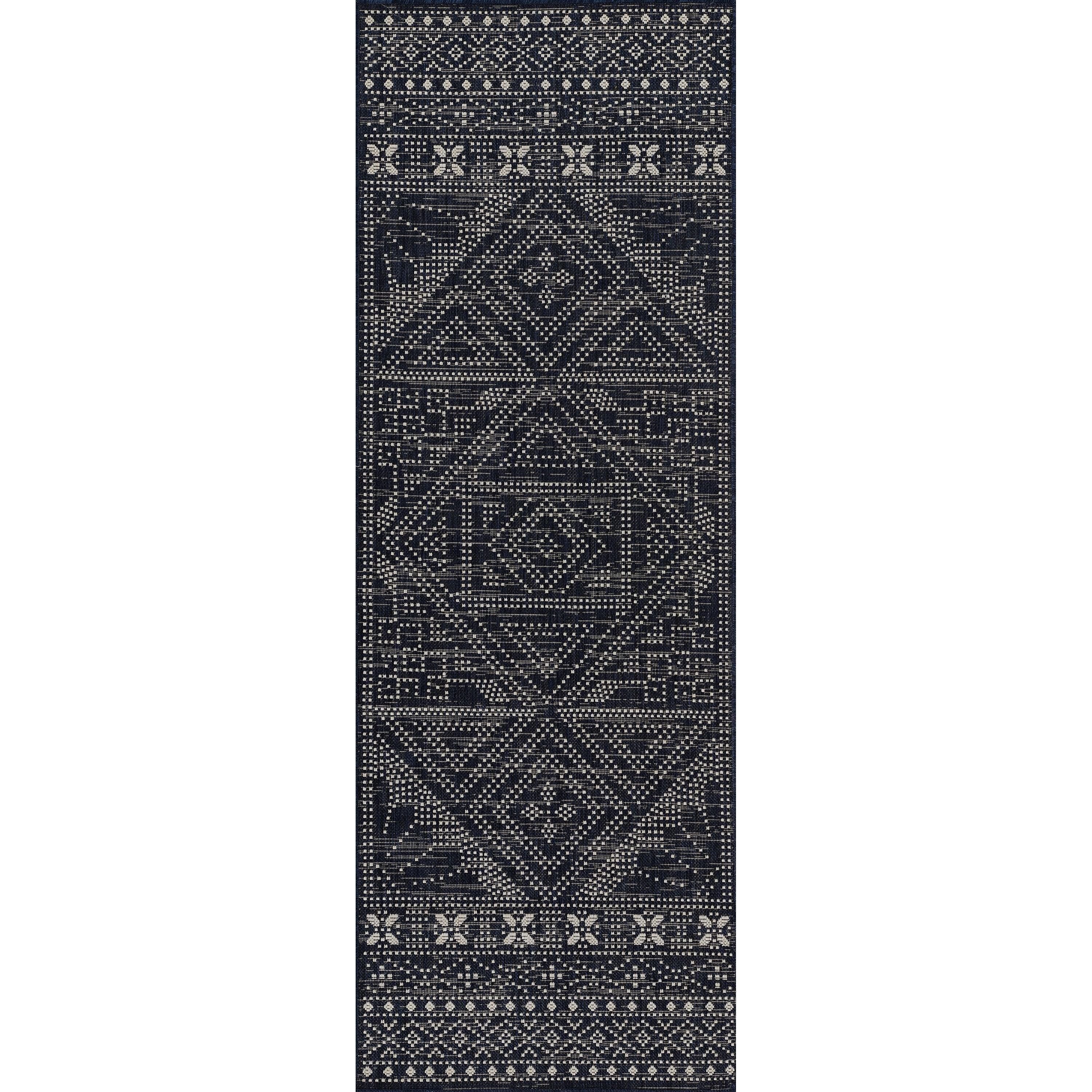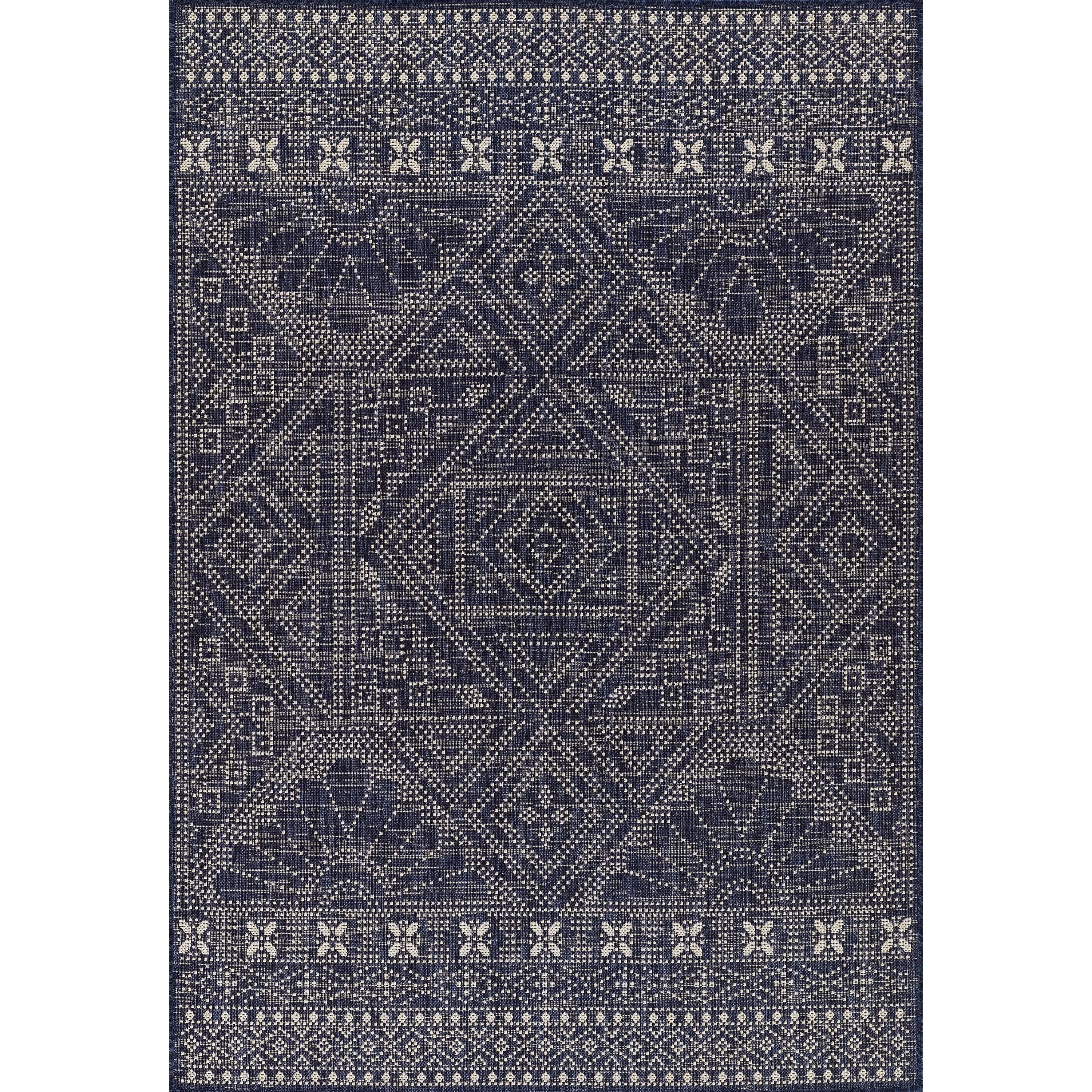 Riviera RV 03 Navy rug, part of the Riviera Collection inspired by resort vibes. Imagine sunny colors and breezy oversized prints - a refreshing break from traditional home decor pieces. Crafted from durable polypropylene, these rugs are versatile for both indoor and outdoor use. Transform your patios and porches into stylish retreats that seamlessly blend with your interior decor.