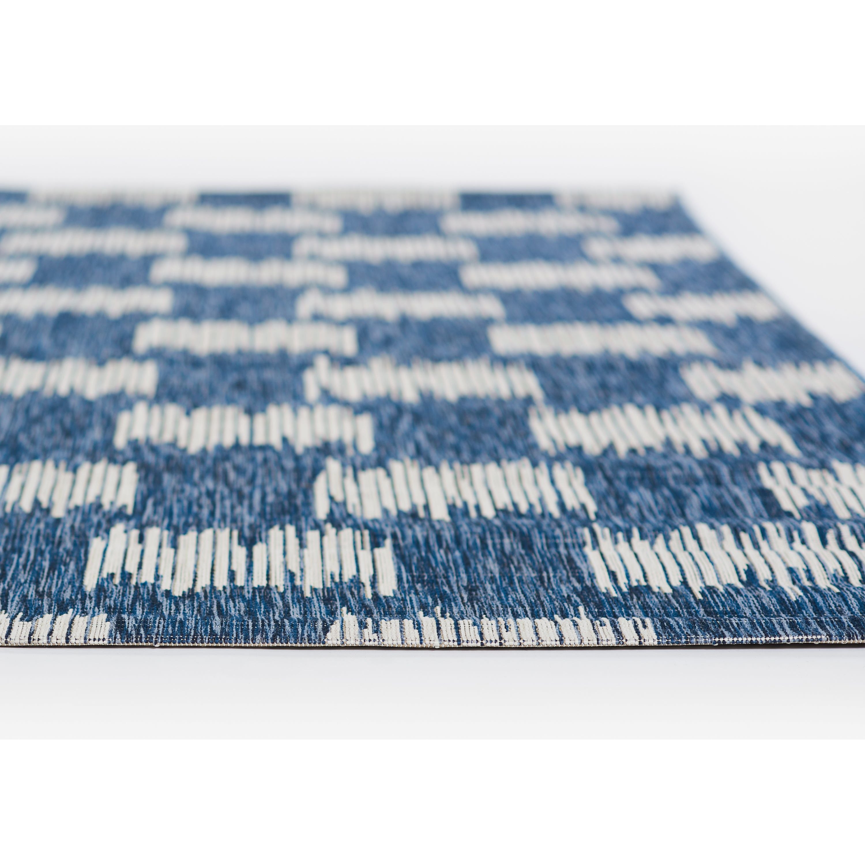 Villa Vi 12 Blue, a versatile indoor/outdoor rug collection that brings a touch of contemporary style to any space. Inspired by international architectural designs, these rugs showcase repetitive patterns that add a modern flair to your decor. The all-weather series features striking geometric prints in charcoal grey, chambray blue, fuchsia pink, and russet red hues, making it easy to elevate any room with a pop of color.
