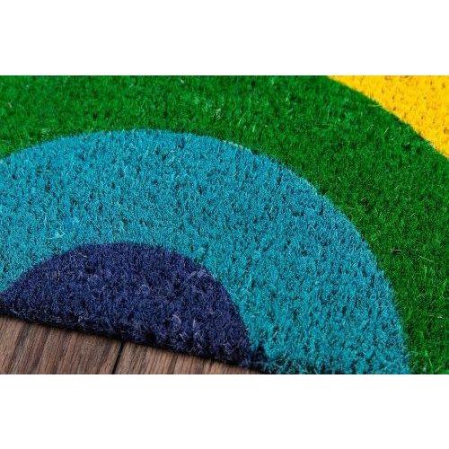 Aloha Alo 8 Multi, a stylish and eco-friendly welcome mat that adds a touch of retro charm to your outdoor space. With its bold typography and graphic color blocking, this area rug is designed to make a statement and welcome your guests with flair. The durable exterior is perfect for wiping feet clean before entering your home, making it both functional and fashionable.