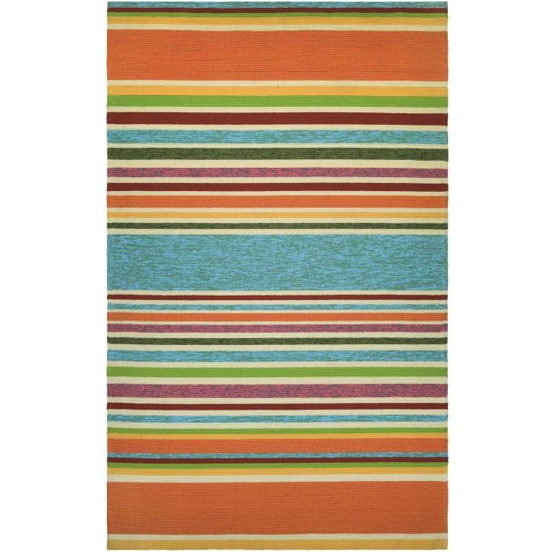 Covington Sherbet Stripe Multi rug, a versatile and stylish addition to any indoor or outdoor space. Made of 100% Fiber-Enhanced Courtron™ Polypropylene, this rug is not only durable but also water-resistant, making it perfect for high-traffic areas in your home. The exquisite hand-hooked construction ensures long-lasting performance, even in frequently used spaces.