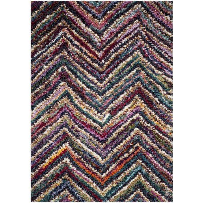 Fiesta Shag FSG363M, a delightful addition to any space. This shag rug features whimsical circle motifs that stand out against the plush pile, creating a playful and vibrant atmosphere. The striking rainbows of color and texture add depth and character to the design, making it a perfect choice for kids' bedrooms, playrooms, or casual family rooms.