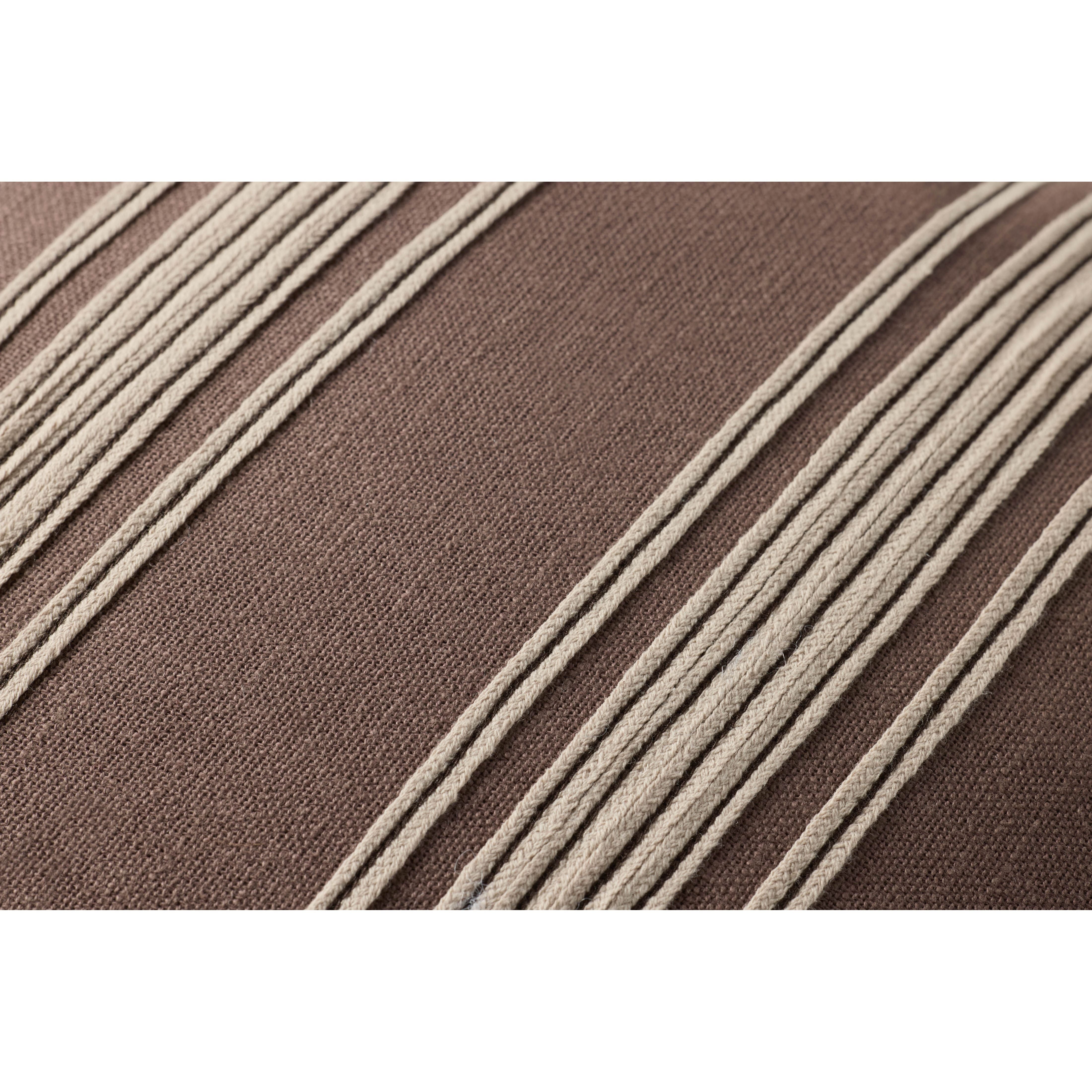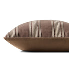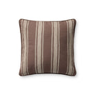 The Verona throw pillow by Chris Loves Julia x Loloi features a classic wide ribbon stripe; a versatile design for many home decor styles. The brown-striped pillow is made of 100% cotton in India and measures 18” x 18”, a standard size to style in living rooms and bedrooms.