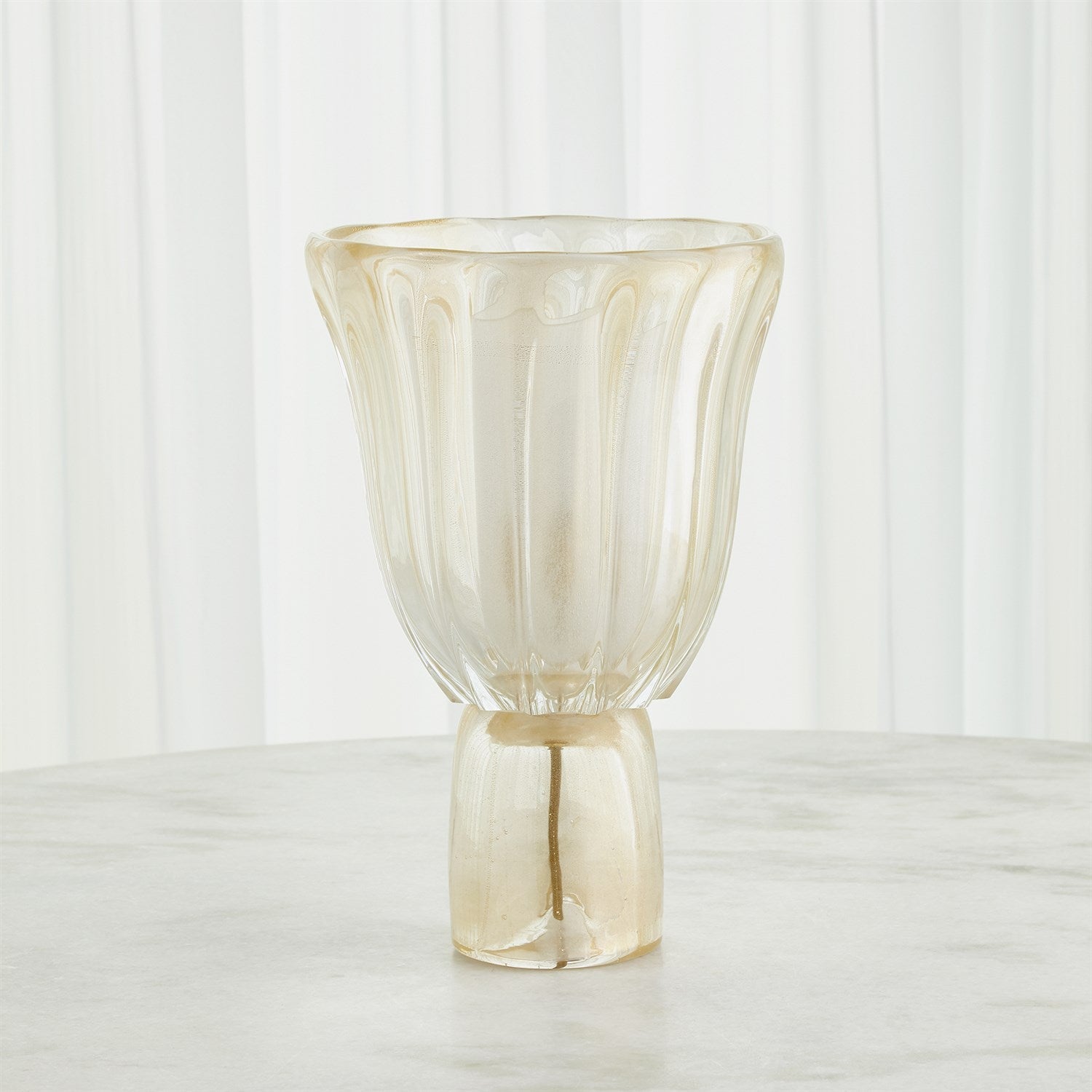 Italian artisans sculpt the Astoria Lighted Hurricane by hand forming each edge of the cased glass using pinchers to create the unique silhouettes.
