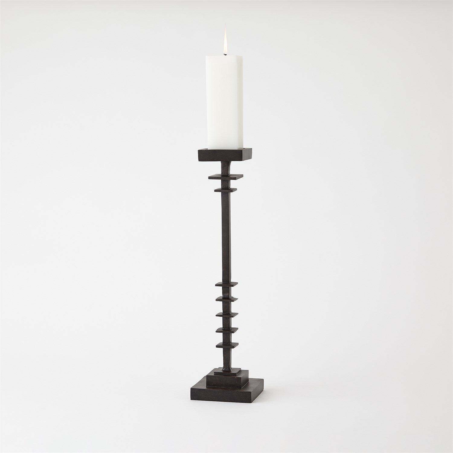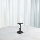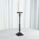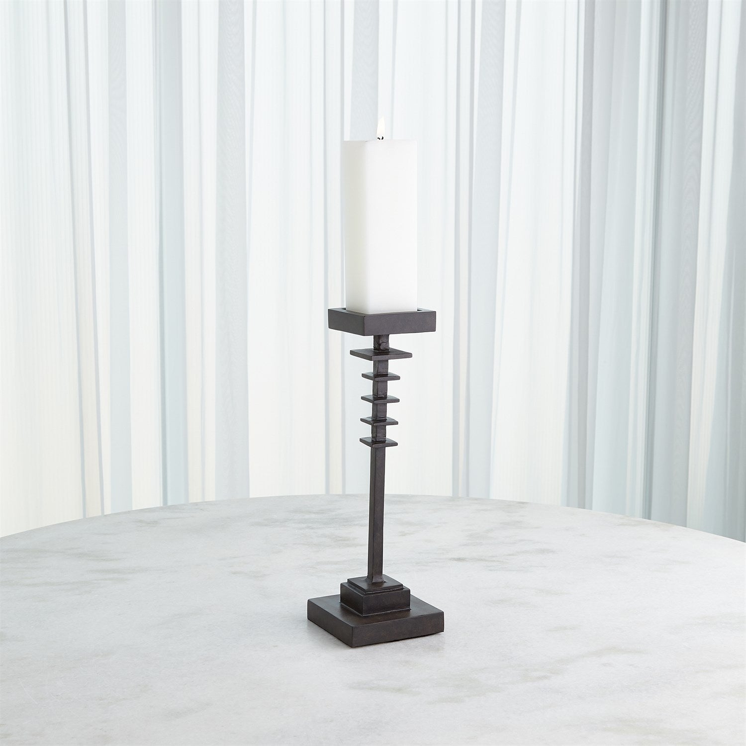 The Corentin Candle Holder showcases a blend of strength and design. Crafted with precision, its stepped design adds a dynamic visual element, creating a sense of depth and dimension. The dark finish accentuates the forged metal texture, making it a captivating centerpiece that effortlessly makes any decor and brings a warm and inviting glow to any space.