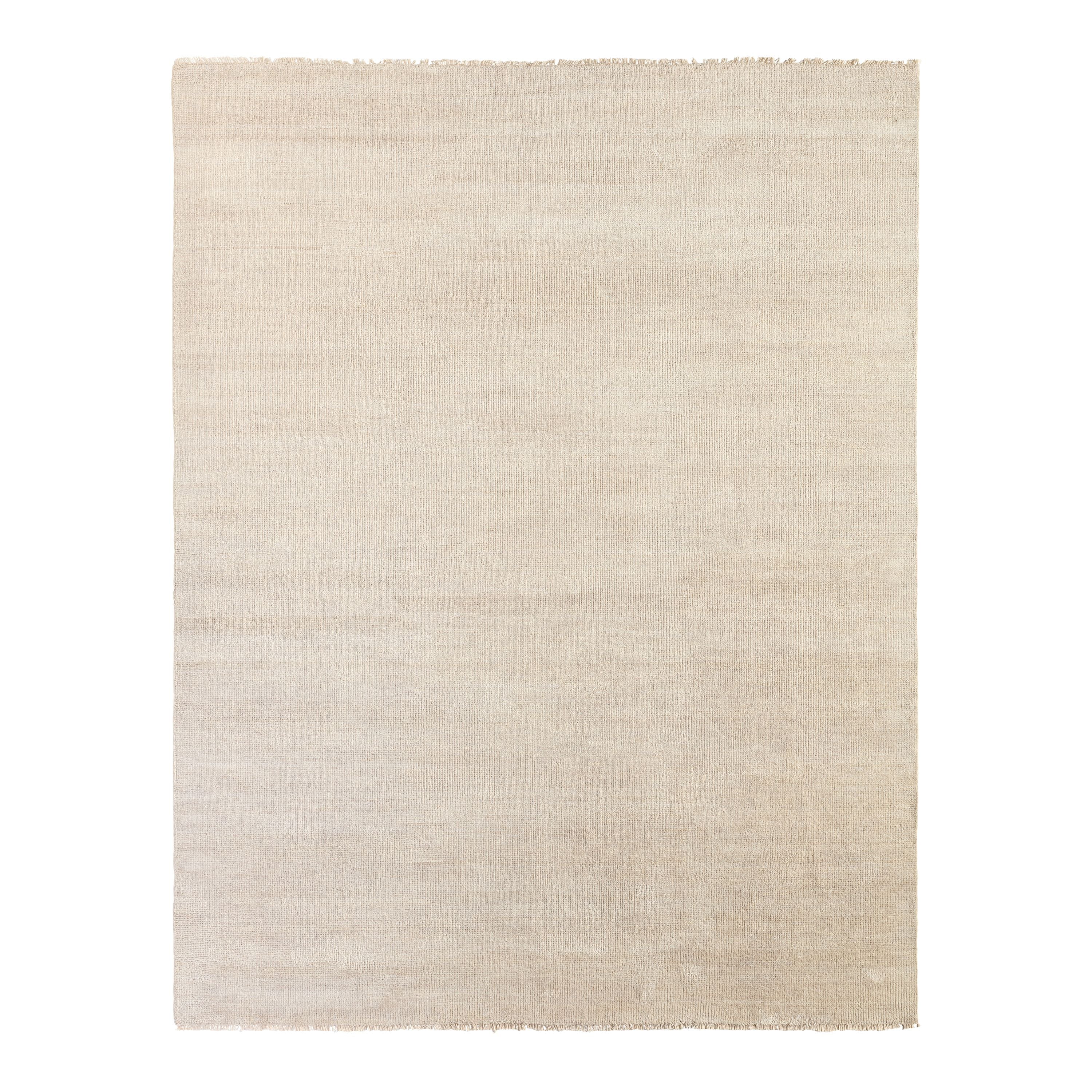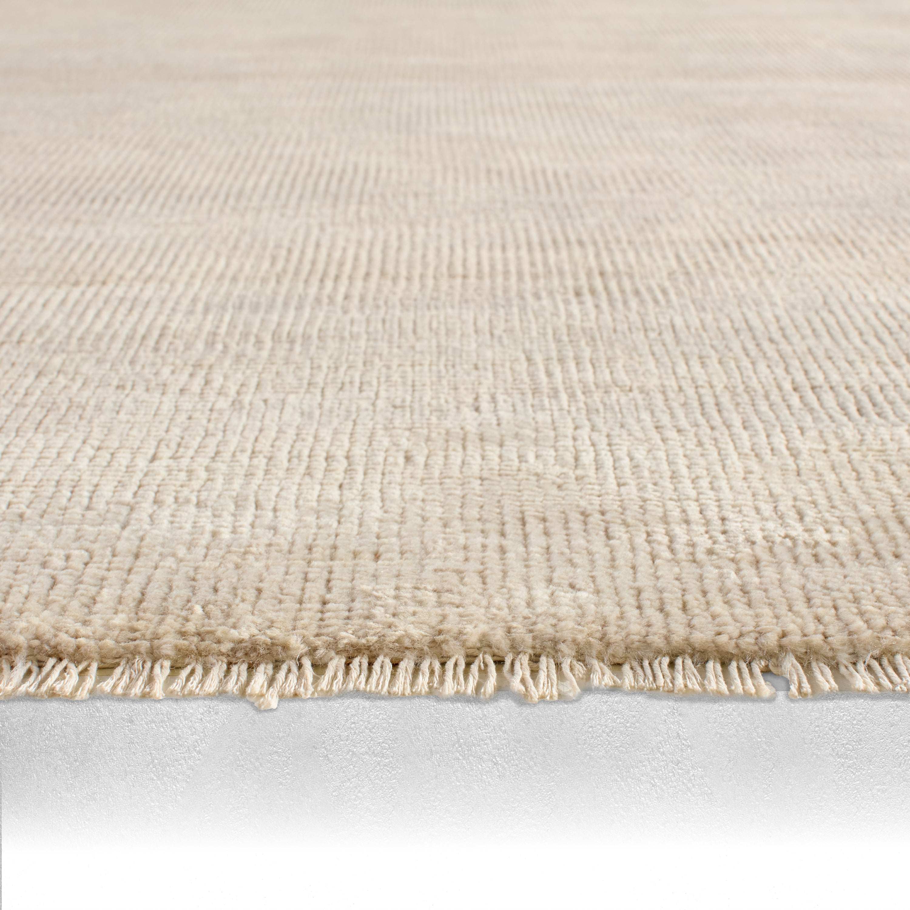 The sophisticated Saga collection lends balance and a relaxed, grounding vibe to modern interiors. The Origin area rug anchors a space with a solid, subtly striated design in a white and light gray colorway. Hand knotted by skilled artisans, this durable wool accent marries simplicity and luxury with an exceptional quality.