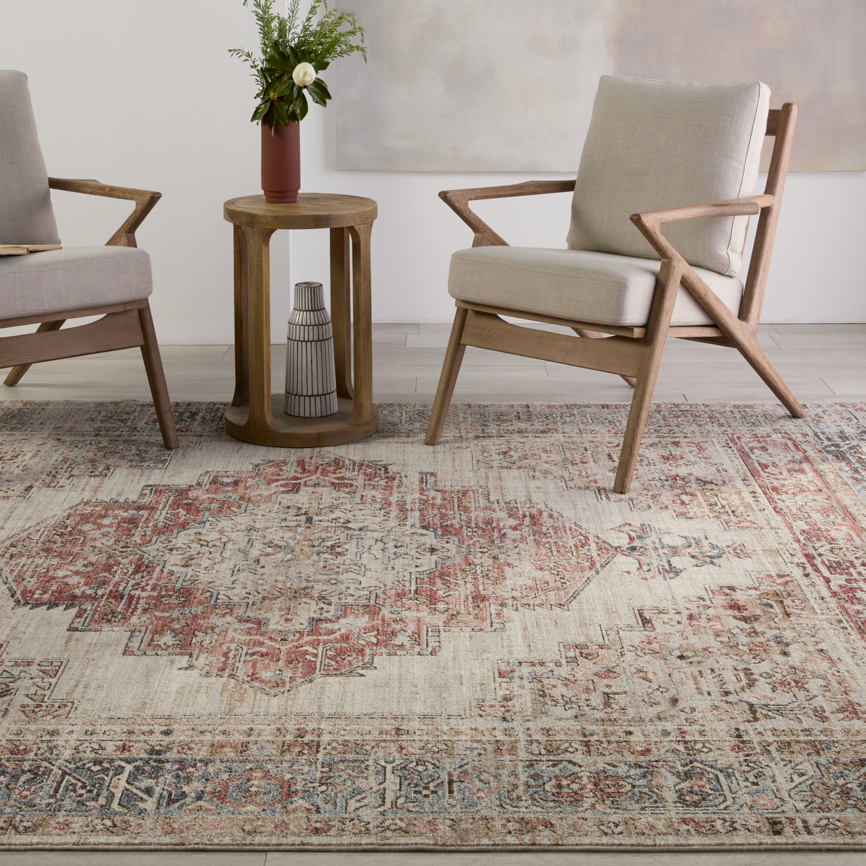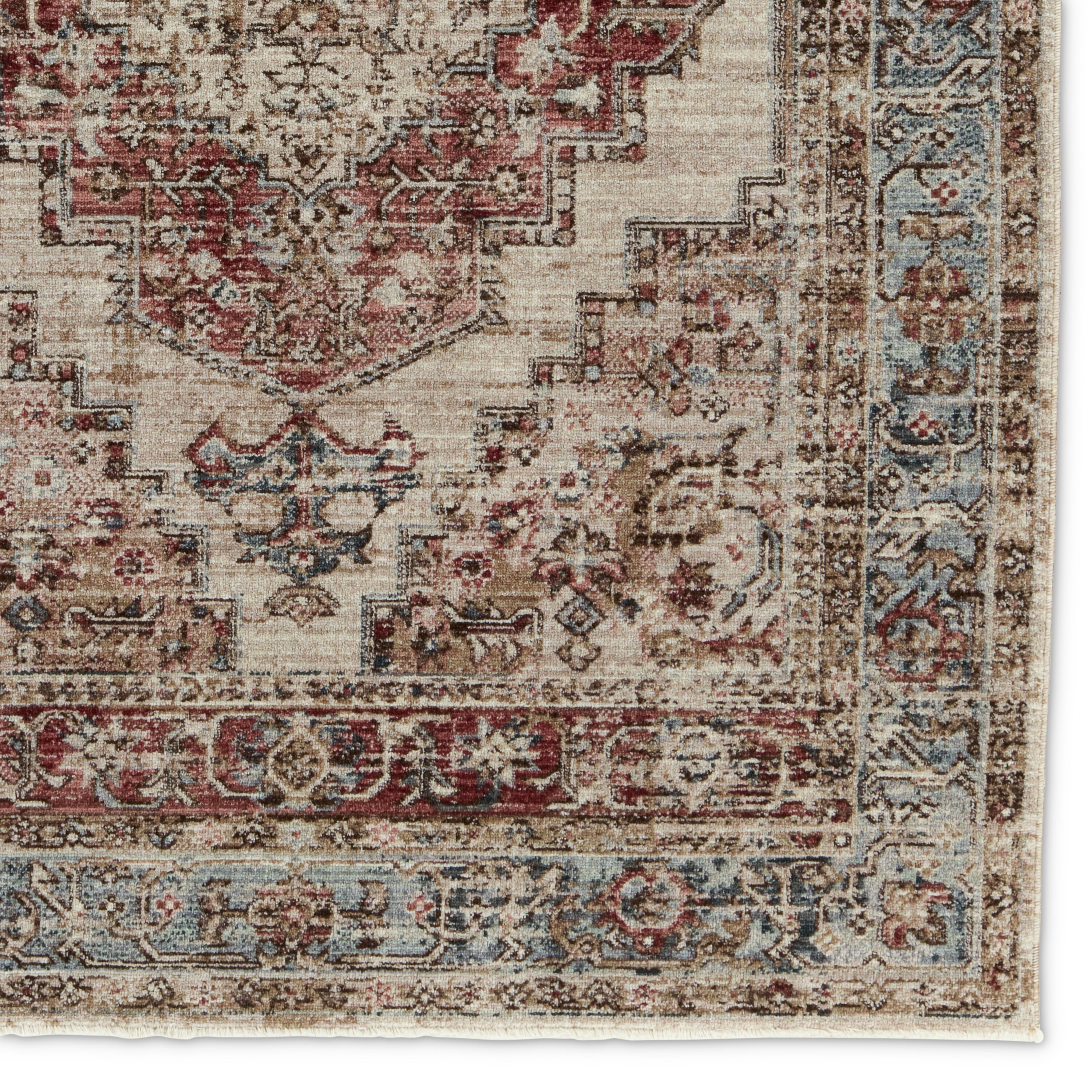 Inspired by fine, handcrafted designs of Chobi rugs from Afghanistan, the Leila collection makes traditional beauty accessible. The Emory area rug features a distressed, medallion design in rich tones of red, blue, gray, and brown. This polyester accent is durable and easy-to-clean, offering the perfect grounding accent to homes with pets or kids. This indoor rug works perfectly in high traffic areas such as living rooms, halls, entryways, and dining areas.