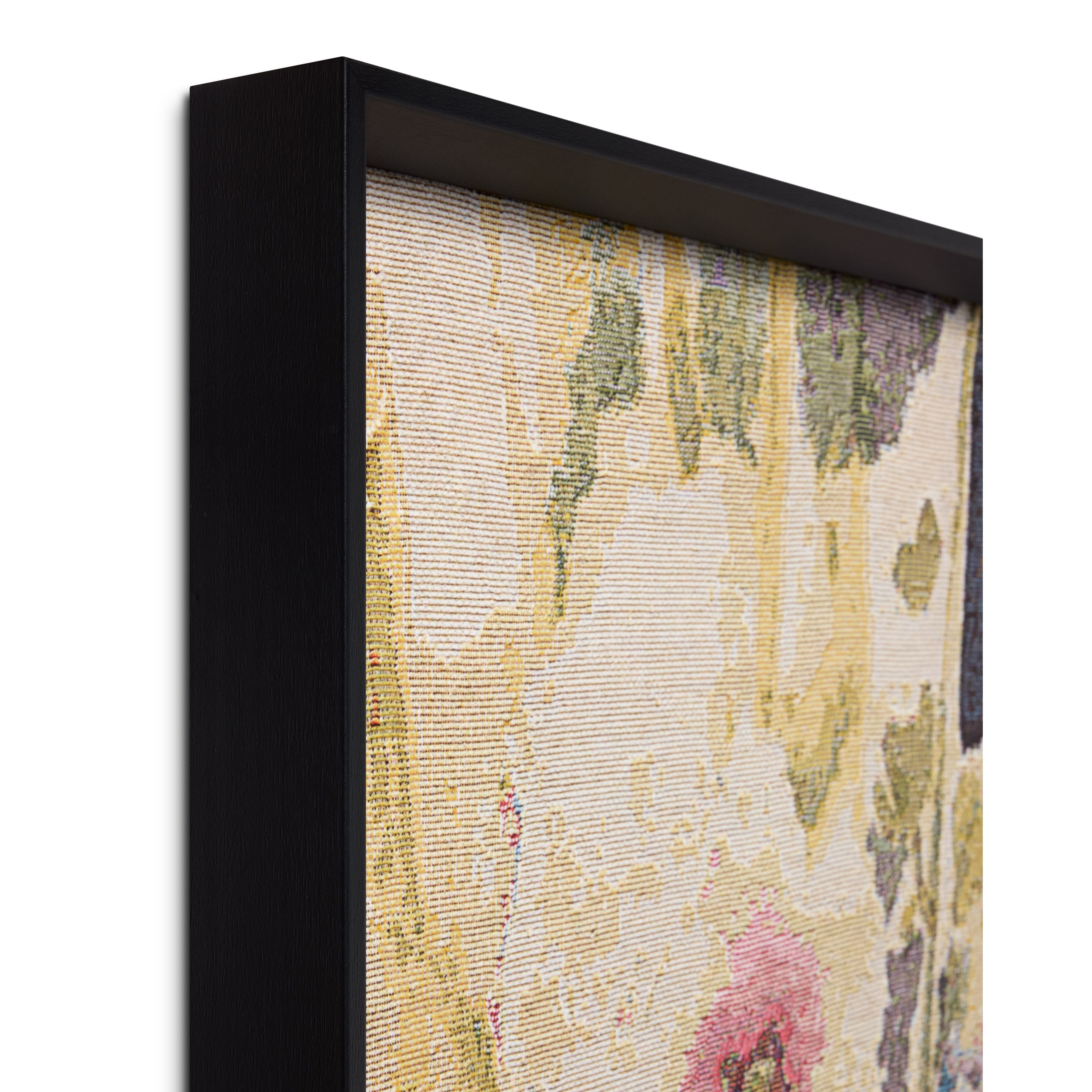 Saku is large wall art with a dripping floral design and the subtle texture of an oil painting, a colorful accent for modern home decor. Saku is made in India from cotton and polyester, and custom-framed by Loloi in the USA, measuring 59” x 39”.