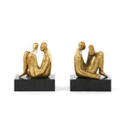 Turn any console, side table, or bookshelf in your home into a miniature modern art museum with our pair of Amadeo Sitting Statues. The stylized figures recall the abstract sculptures of the 1940s and ‘50s, stripped down to embody a true celebration of form. They’re crafted from iron and finished in gold leaf that provides an artful sense of glamour, appropriately presented atop a sleek black marble base. Whether paired on either end of your favorite leather-bound books or split up and placed individually in different scenes of your home, their presence is sure to elevate the ambiance.