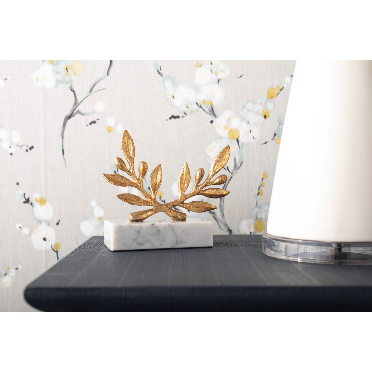 Gilded, glamorous, and rooted in poetic symbolism, our Olive Statue is rich with meaning and decorative appeal. Since the times of Ancient Greece, olive branches have represented peace, friendship, and victory—why wouldn’t you want to bring those good vibes home? Villa & House’s artisans have reimagined the traditional symbol in gold-leafed iron, depicting a pair of crossed olive branches with artful attention to detail. The organic form is made up of delicate leaves and olive bulbs, realized in a romantic style that recalls the Art Deco designs of the past. The sculpture stands on an elegant base of white marble, nodding to its classical roots. The Olive Statue makes for a beautiful gift for a friend or loved one, or a welcoming emblem of goodwill in your own home.