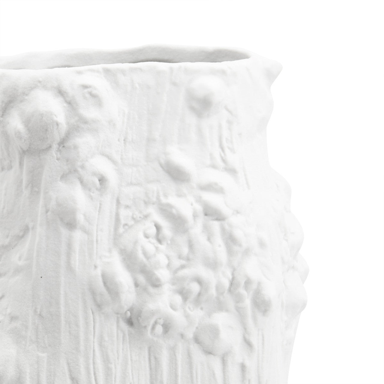 The Saorise vase is one of several new vases that takes it's inspiration from forms encountered in the natural world. Borrowing from coral reefs, to forests, to natural rock outcroppings, our artisans have created vases in white matte porcelain that celebrate the beauty and the asymmetry forms encountered in both land and sea.The Saorise Large Vase recalls a tree trunk in the forest with all the little growths and knobs that would naturally occur stunning in their originality, these pieces serve either decorative objects, for example gracing center table or a dining table, or as vases holding floral arrangements.