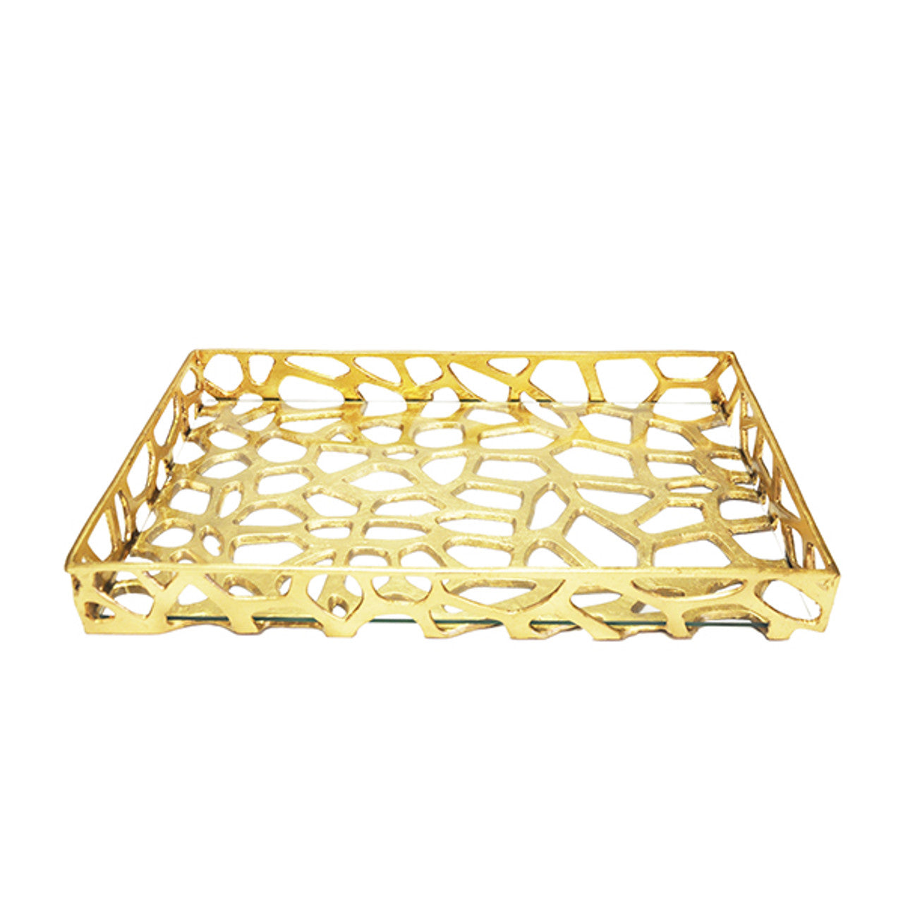 Inspired by nature, the organic Byron tray is a perfect accessory to express your eclectic personal style! Hand finished in gold leaf with a glass bottom, it is perfectly suited for serving cocktails or as a unique display tray for jewelry or accessories.