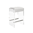 You'll love the illusion of weightlessness and luxury with our Indy counter stool. Sturdy and glamorous, the Indy features a pristine, white vinyl cushion secured between acrylic side panels and polished nickel hardware accents.
