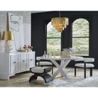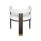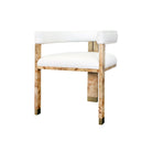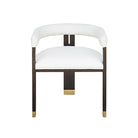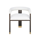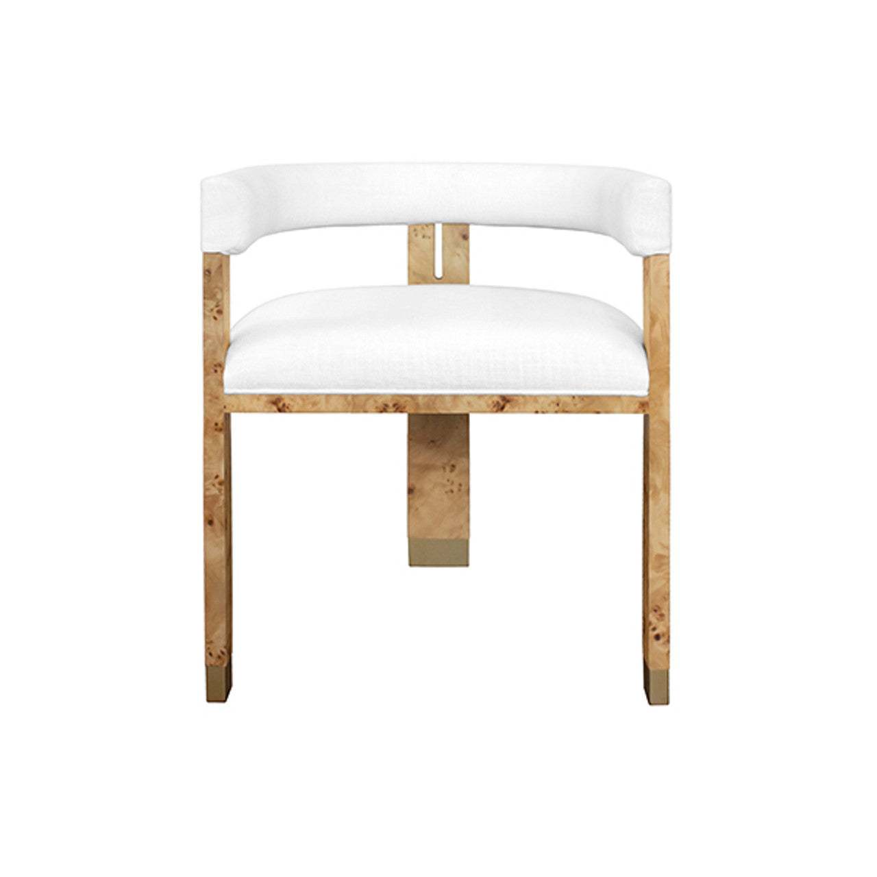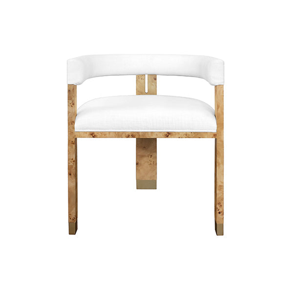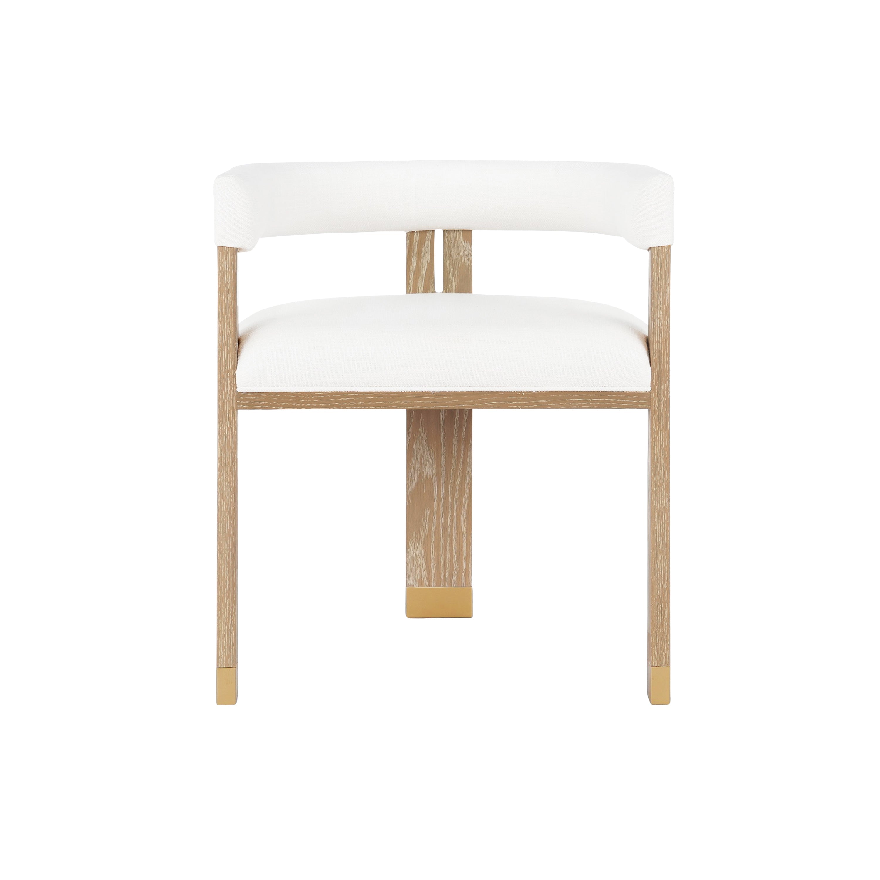 The Jude barrel back dining chair makes a dramatic statement from every angle. Perfectly tailored in crisp white linen upholstery, its oak, tri-leg frame showcases a cerused oak finish and brass ferrule hardware, all combining for a highly sought silhouette. Jude looks great as a pair in your living room or grouped around your favorite dining table.