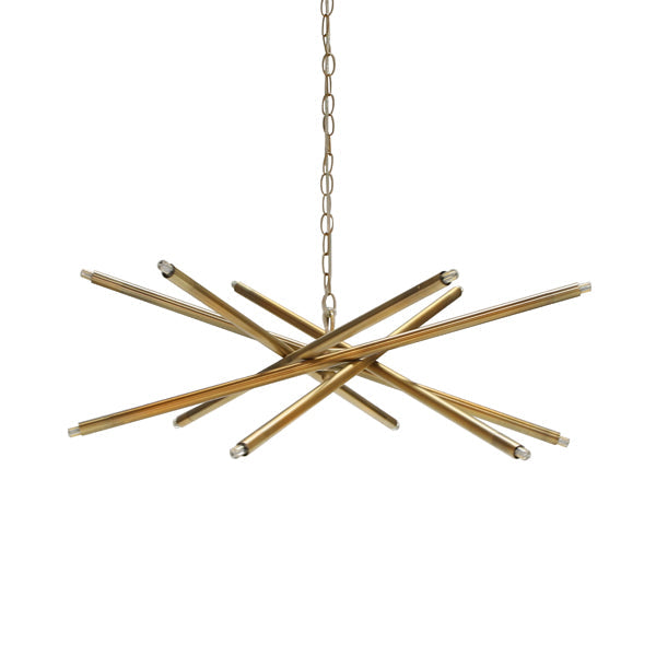A consummate designer favorite, our interstellar, Sputnik style chandelier features perfectly-balanced, intersecting rods finished in elegant antique brass. Exposed lamping provides a warm, decorative ambiance for a harmonius interplay of bold form and sensible function. The iconic Luisa chandelier offers a wow factor like no other!