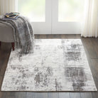 KI37 Safari Dreams KI372 Ivory Grey rug from Kathy Ireland Home, where sophisticated shades of grey blend seamlessly over an ivory backdrop. This rug makes a stunning artistic statement with its beautifully distressed design. The sleek low pile and simulated brush strokes give it a modern touch, perfect for adding a contemporary flair to any room in your home.