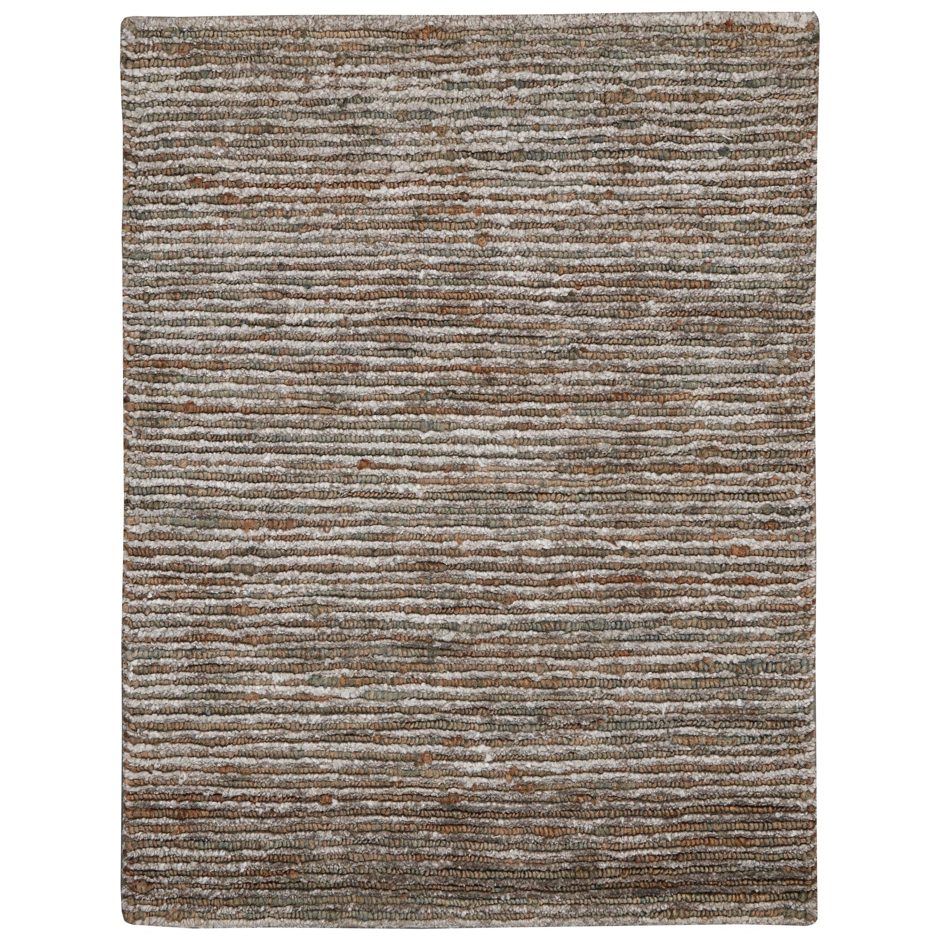 Mesa MSA01 Hematite, a unique rug crafted from eco-friendly fibers for a distinct textured look. Handwoven with care, this collection showcases hand-dyed yarns in soothing neutral shades. Made from a blend of jute and bamboo fiber in a cut-and-loop pile, these rugs bring a touch of simplicity to any space while embodying Calvin Klein Home's timeless modern design aesthetic.