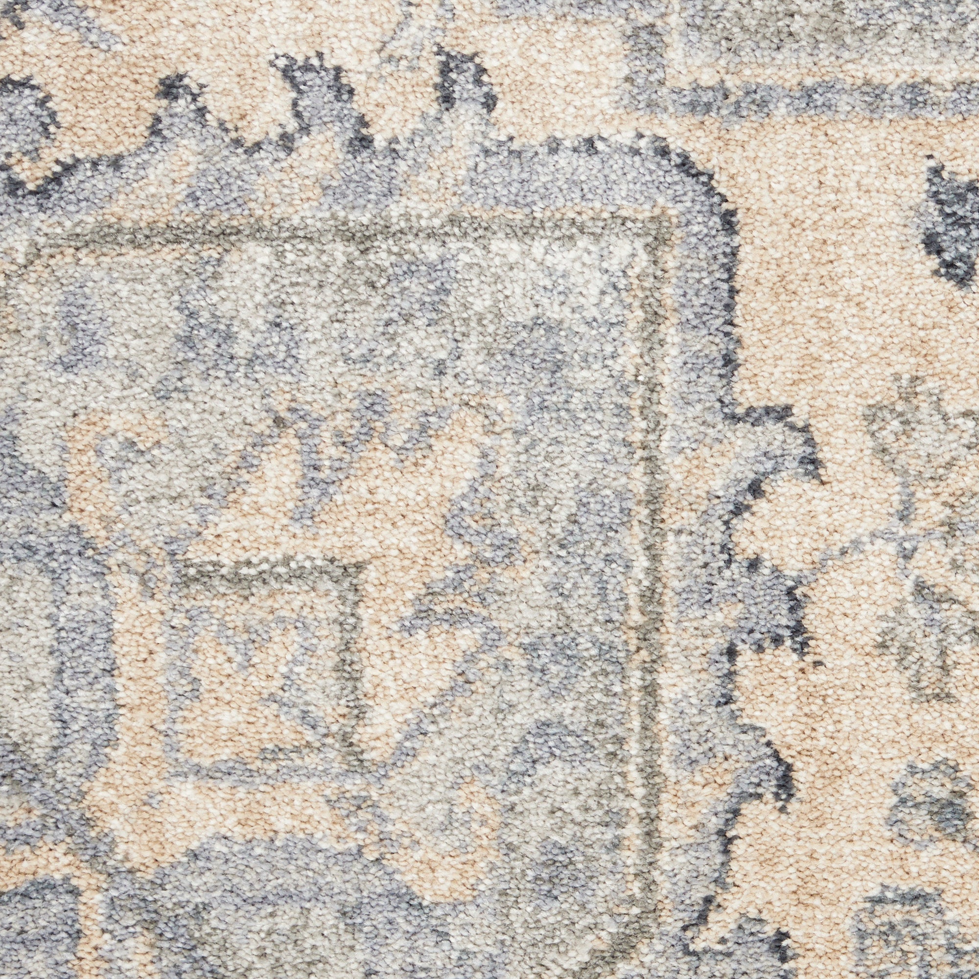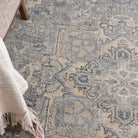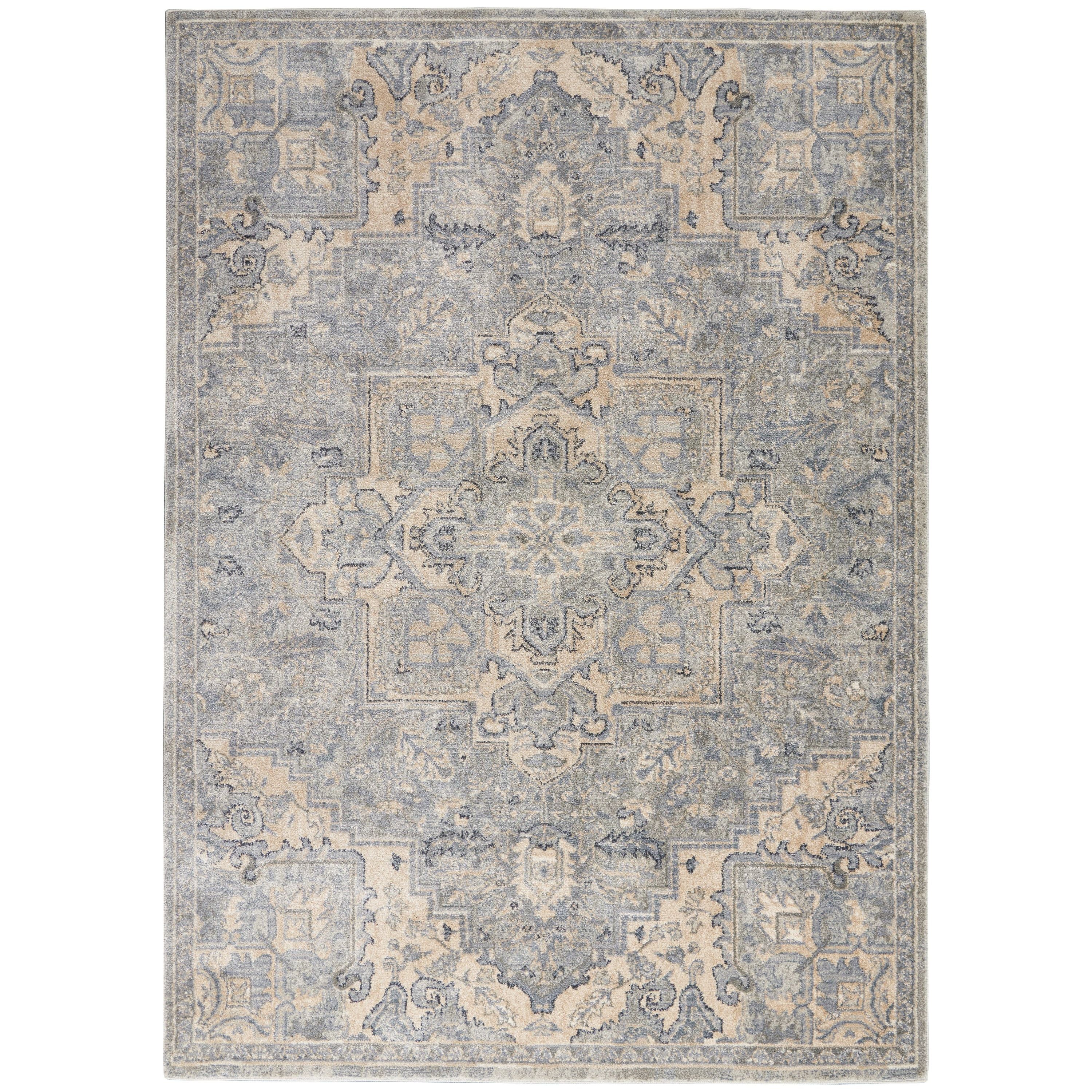 exquisite Moroccan Celebration KI382 Silver rug from the kathy ireland Home collection. Immerse yourself in a fusion of classic Persian motifs and modern abstract patterns, showcasing a palette of serene neutrals and deep blues. Crafted with precision through power loom technology, these rugs are not only visually stunning but also built to last. The easy-care maintenance ensures that your rug retains its beauty for years to come, making it a practical yet stylish addition to any space.