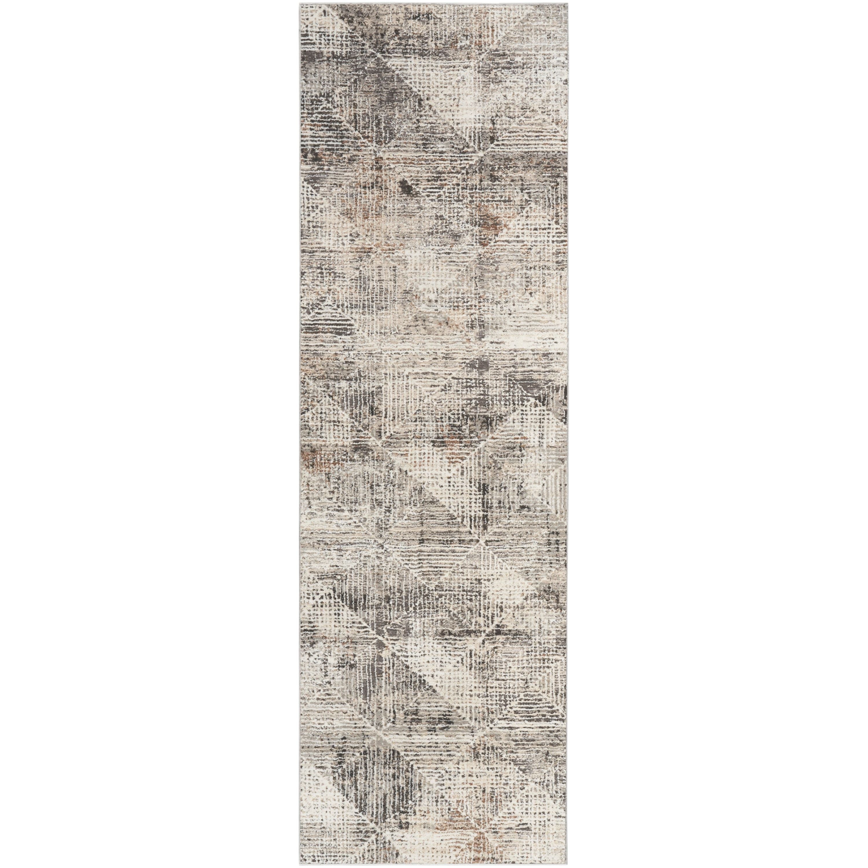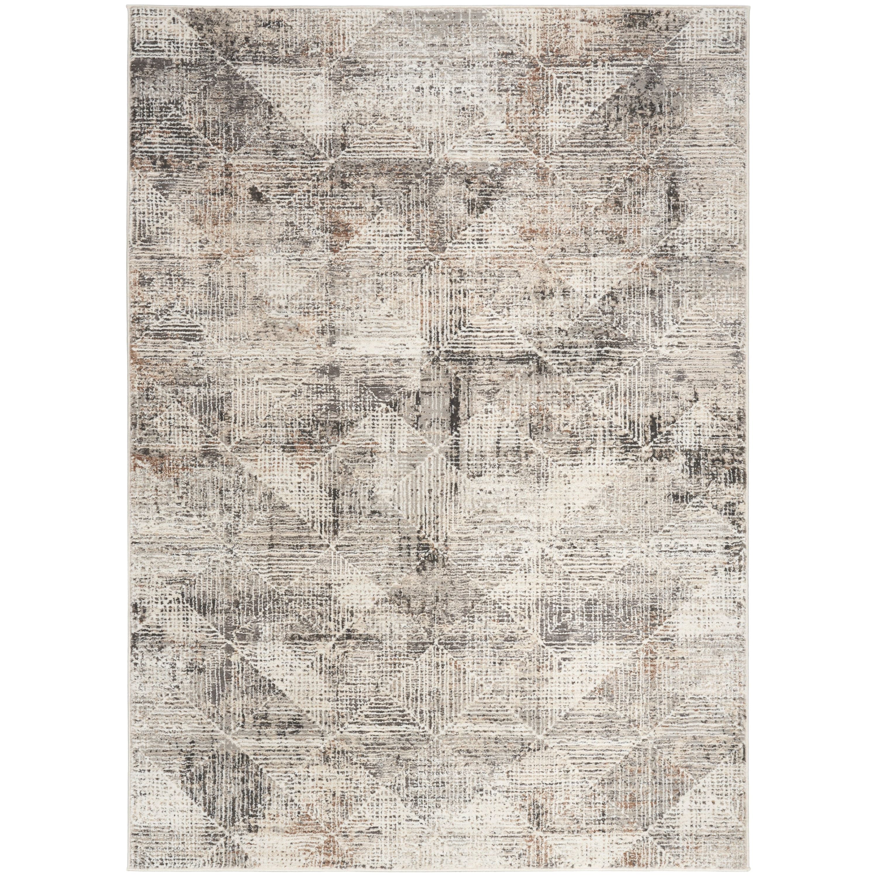 Elevate the style of your home with the Sustainable Trends SUT08 Ivory Multicolor rug. This modern piece from the Sustainable Trends Collection features a captivating abstract design in shades of grey, ivory, and tan. The geometric pattern overlay adds a touch of sophistication and visual interest to any room.
