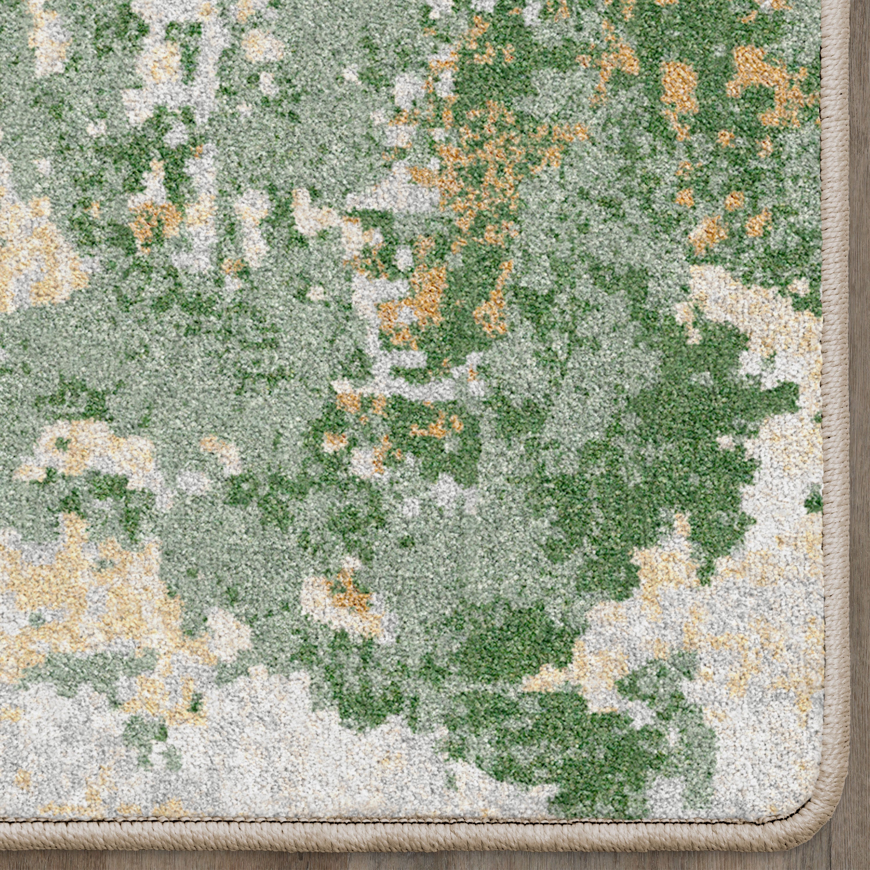 "First off, I love this rug .. the colours and the texture of the rug turned out to be exactly what I was hoping for - a very neutral-looking moss green and ivory background with a few tiny pale blue accents. Love the look!"