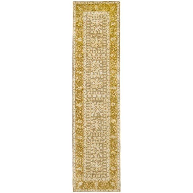 luxurious Silk Road 214A from Safavieh's latest collection. Crafted with premium wool and mercerized Belgian linen, this hand-tufted rug exudes elegance with its silky damask-like patterns. The design seamlessly merges Eastern and Western influences, featuring French-inspired motifs in a gentle color scheme along with classic cypress borders symbolizing the tree of life. Each piece is meticulously made in India to ensure exceptional quality and style.