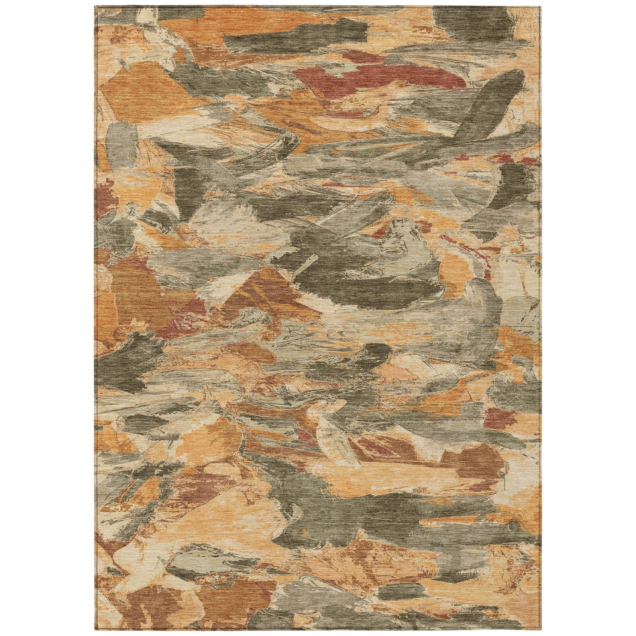 Brighten your decor with the artistic paint brush strokes that form a modern pattern in this transitional rug. The abstract design brings a fresh and innovative vibe to your space. UV stabilized for versatile use, it boasts ultra-thin construction. This machine-washable rug is perfect for family and pet-friendly homes, providing both style and practicality.