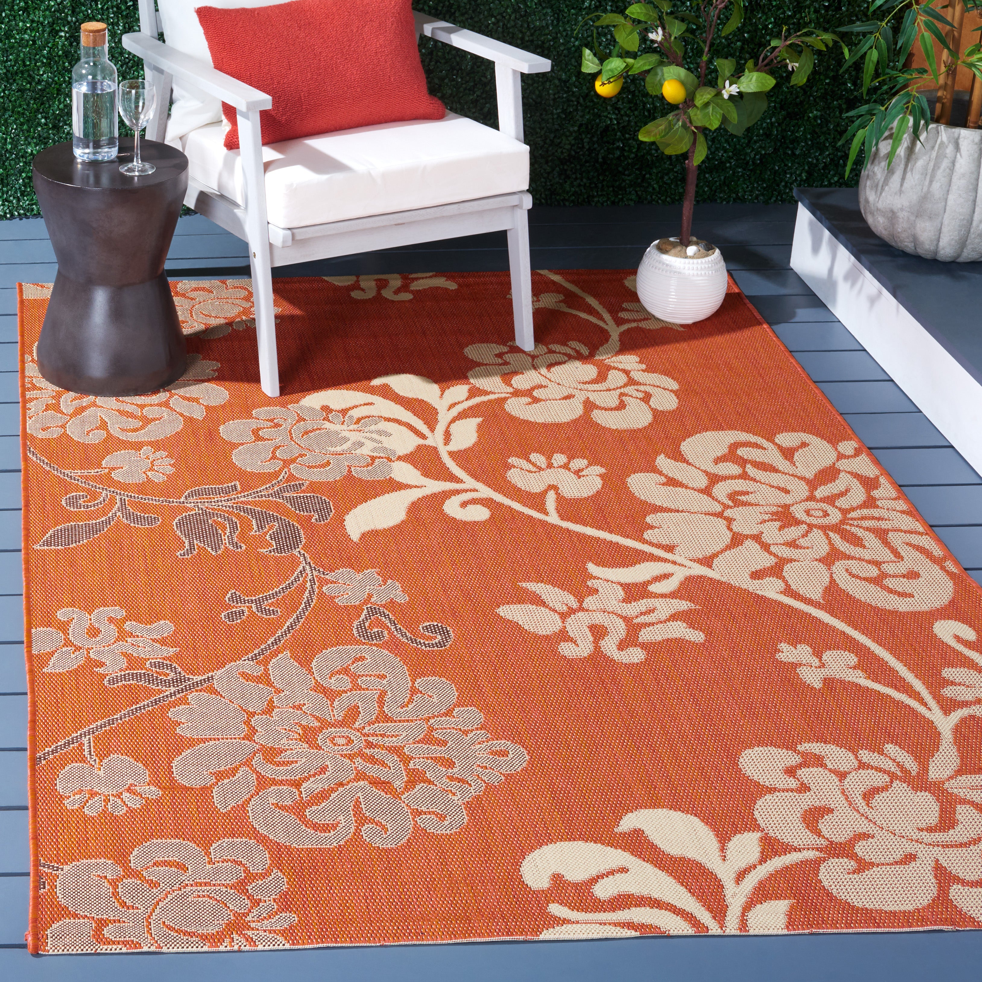 Courtyard CY4027C from Safavieh's versatile Courtyard collection. Elevate your indoor and outdoor decor with these stylish and durable rugs designed for modern living. Crafted in Turkey using enhanced polypropylene, these rugs offer exceptional durability for high-traffic areas. From classic to contemporary, the Courtyard collection features a range of eye-catching designs and trendy colors to complement any space.