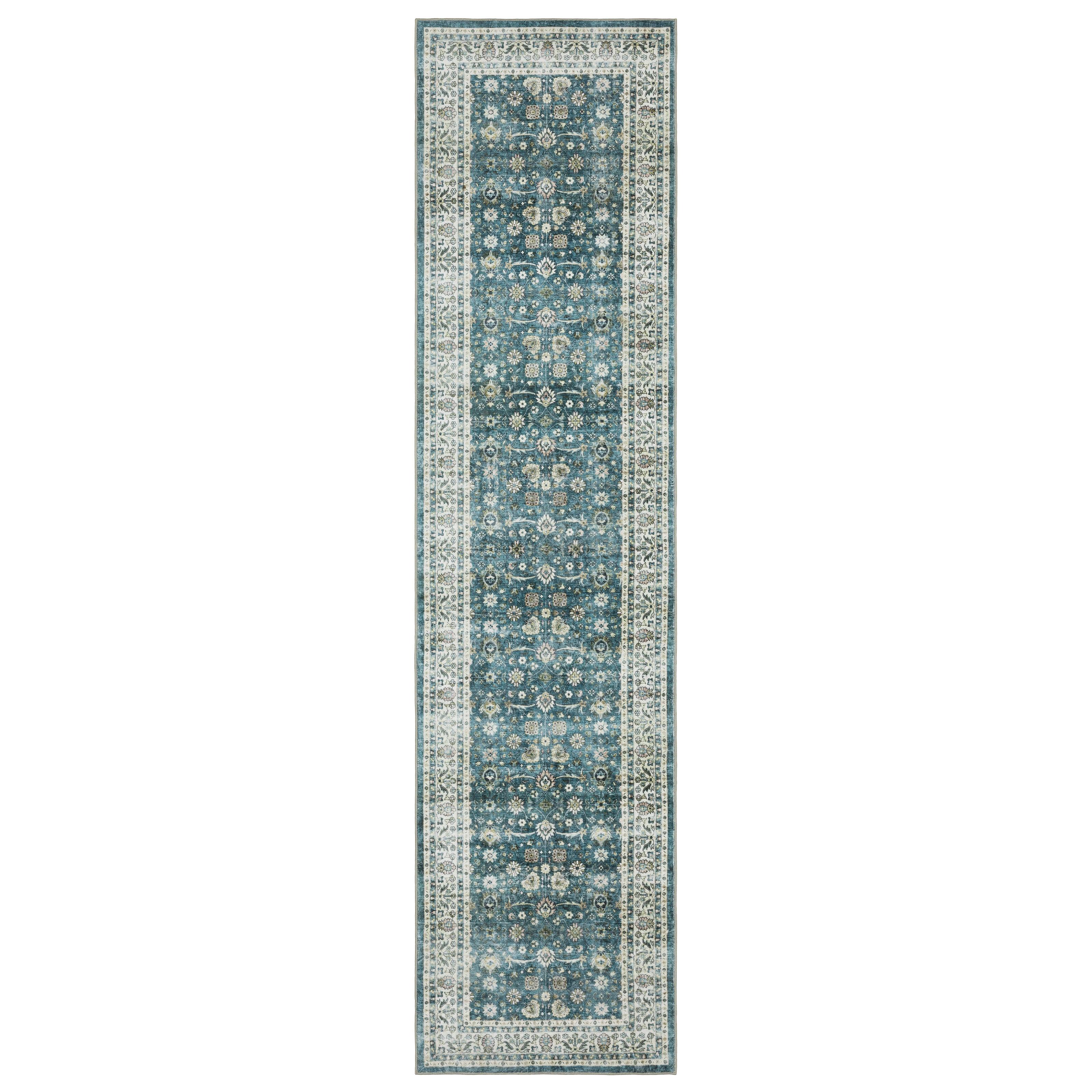 Detailed Colors: Faded Shades of Teal, Ivory, Blue, Beige, Gold, Green, Orange