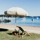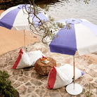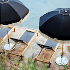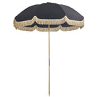 A vintage-inspired umbrella with a domed shape, fringe detail, and classic outdoor styling. Built with oak poles and weather-resistant outdoor canvas, it brings decorative shade to patios, gardens, and poolside spaces.
