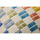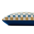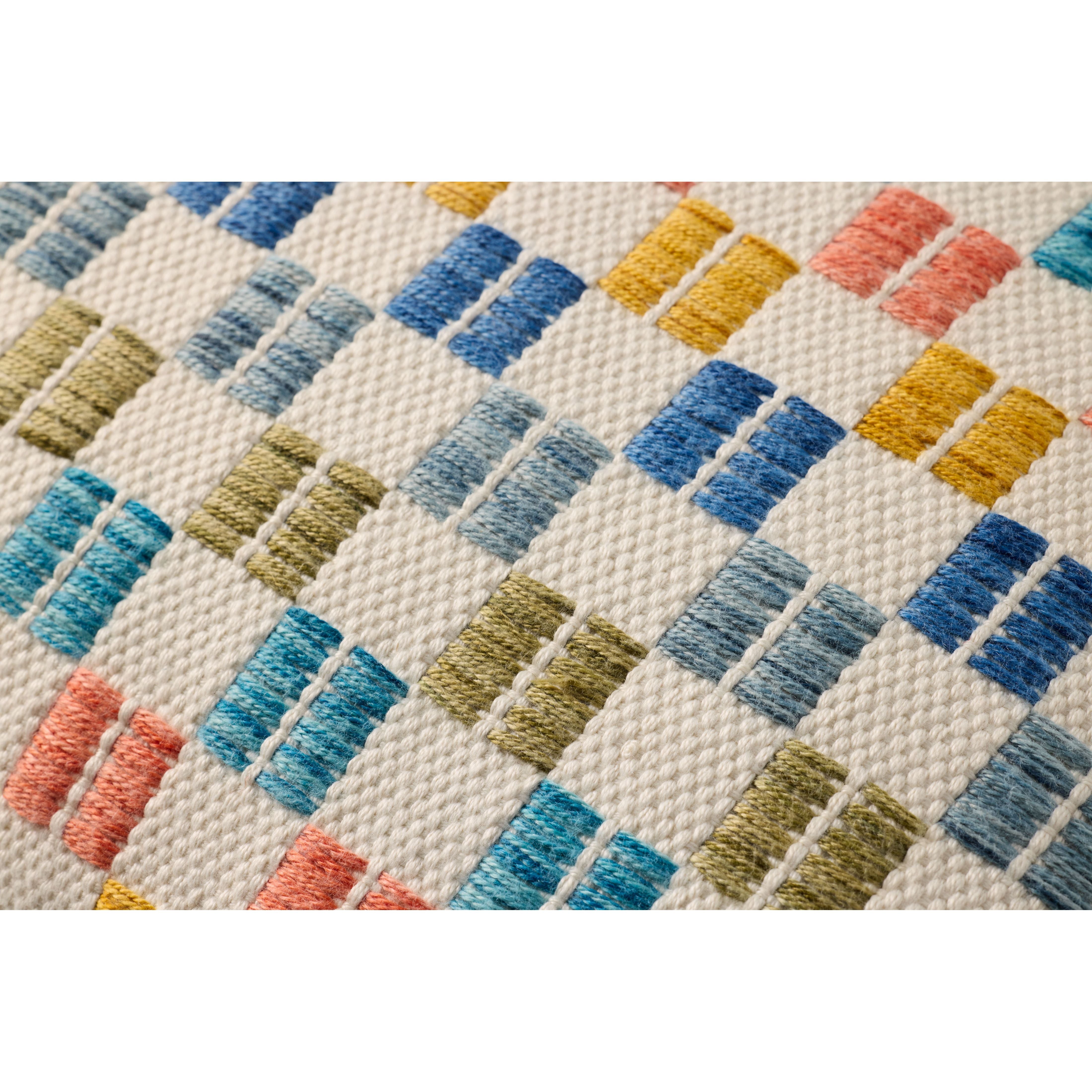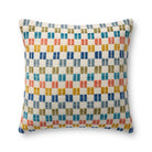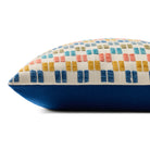 This colorful indoor/outdoor throw pillow features a geometric design with raised embroidered details, a playful accent in living rooms and on patios and porches. Hand-loomed in India of soft yet durable polyester.