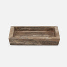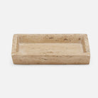 The stone Bowen bath collection celebrates the natural grain and porous texture of travertine material. The stone is filled with Clear resin for a smooth finish.