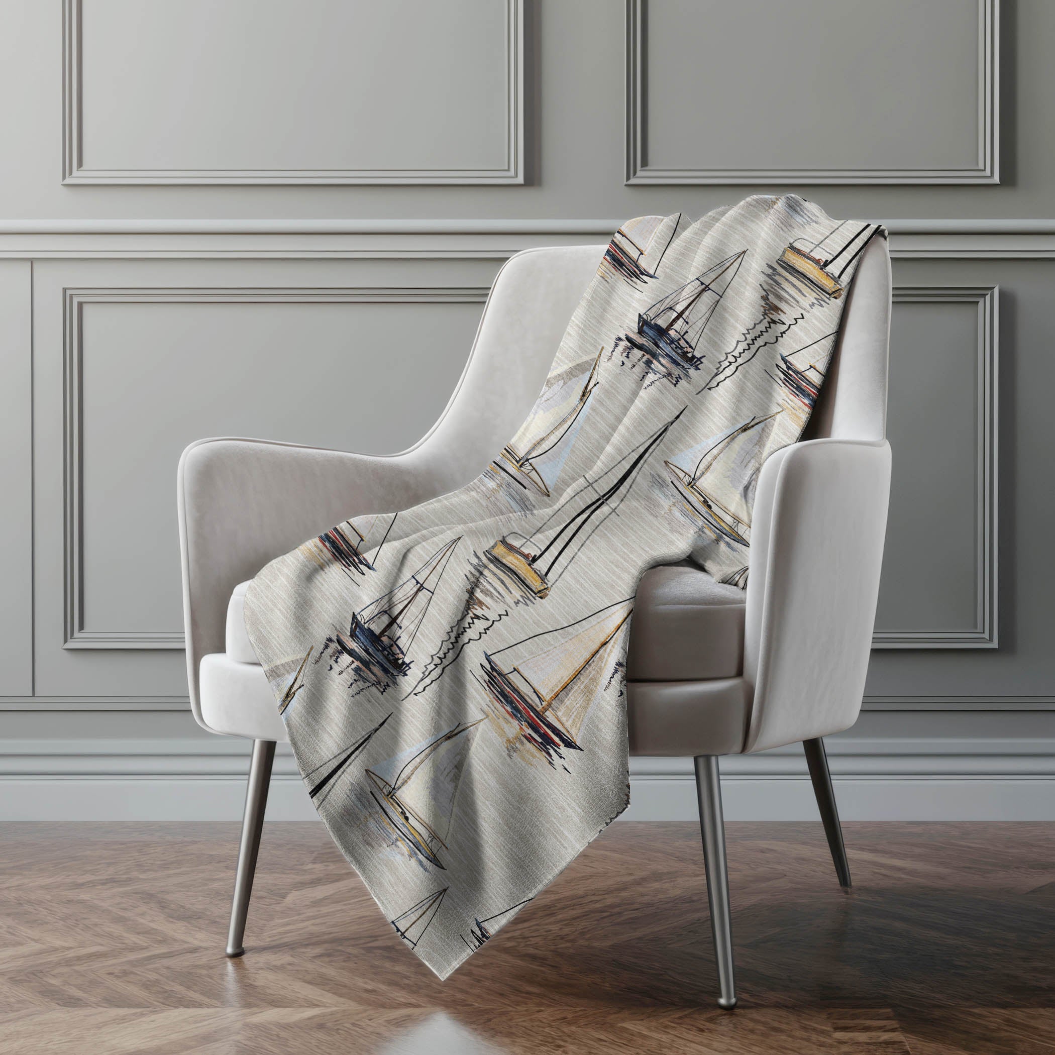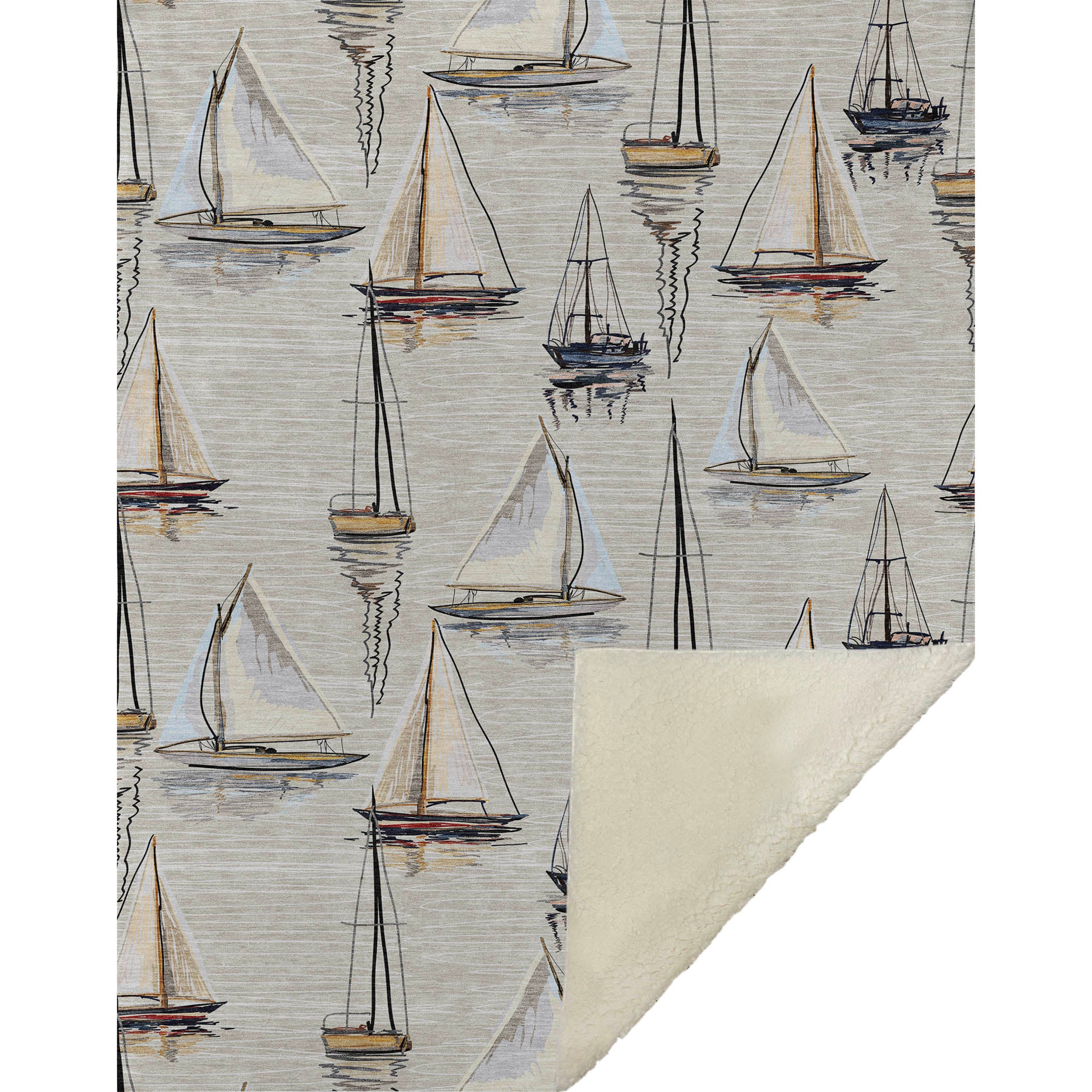 Set sail on a journey of comfort with the coastal charm of small detailed sailboats dancing across a serene, water-like backdrop. The oversized 50" x 70" design provides a generous wrap, featuring a velvet-like soft-touch front paired with a cozy sherpa backing for delightful warmth. Crafted from fade-resistant polyester microfiber, it holds its beauty both indoors and in sheltered outdoor spaces, and keeps care simple with its machine-washable feature.