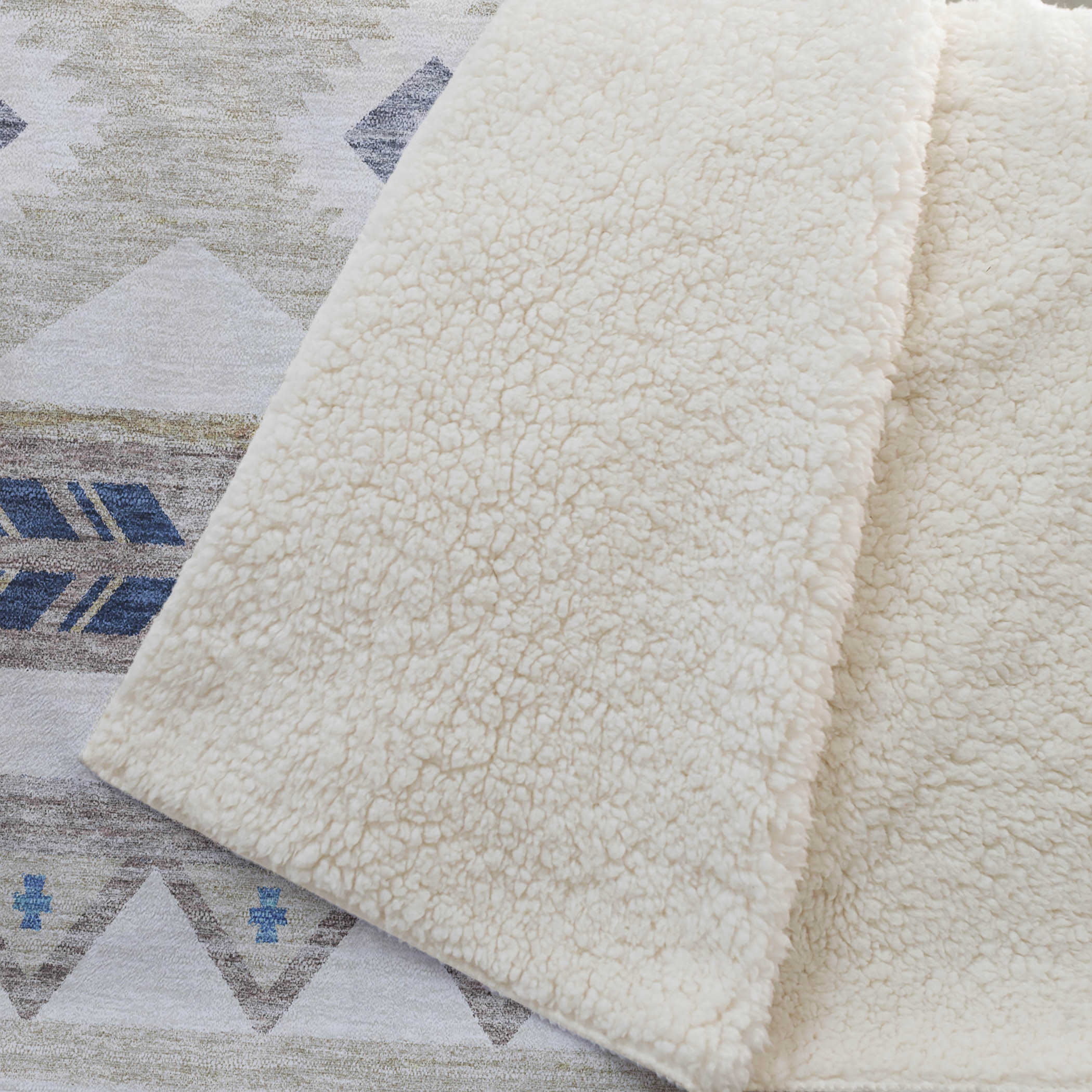 Immerse your home in a southwest allure, where Aztec motifs weave a global narrative into your decor. The 50" x 70" oversized dimensions invite you to luxuriate in the embrace of its soft-touch front and welcoming sherpa backing. Embrace durability with its fade-resistant polyester microfiber construction, suitable for indoor and covered outdoor spaces, and enjoy the ease of its machine-washable nature.