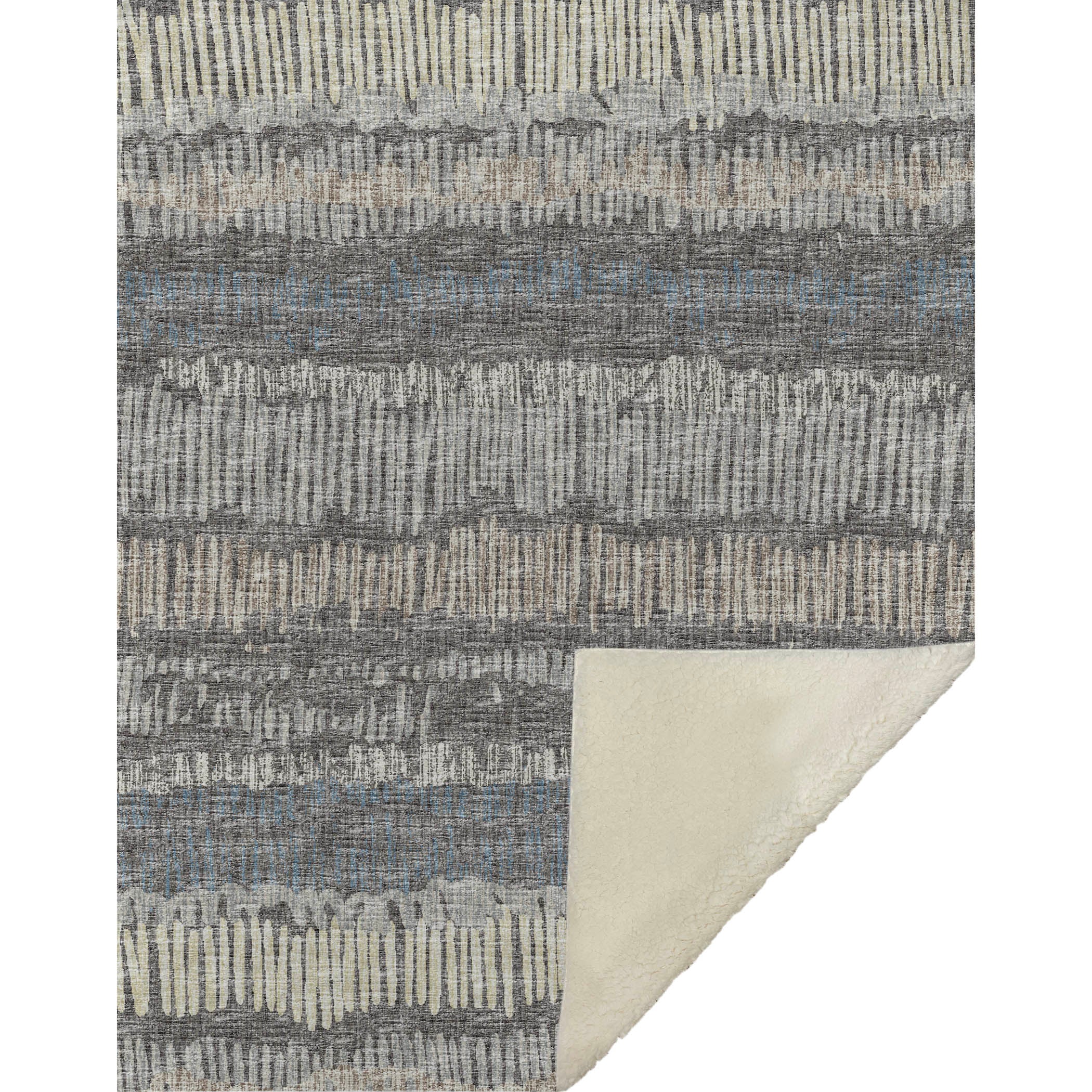 The unique design of this throw, featuring wide bands of horizontal lines and delicate vertical accents, adds texture and sophistication to your space. Its transitional nature makes it a versatile piece, fitting effortlessly into any decor style. Oversized at 50x70, it combines a soft mink-touch front with a sherpa backing, ensuring warmth and comfort. Fade-resistant polyester microfiber ensures durability for indoor and covered outdoor use, and its machine-washable construction simplifies care.