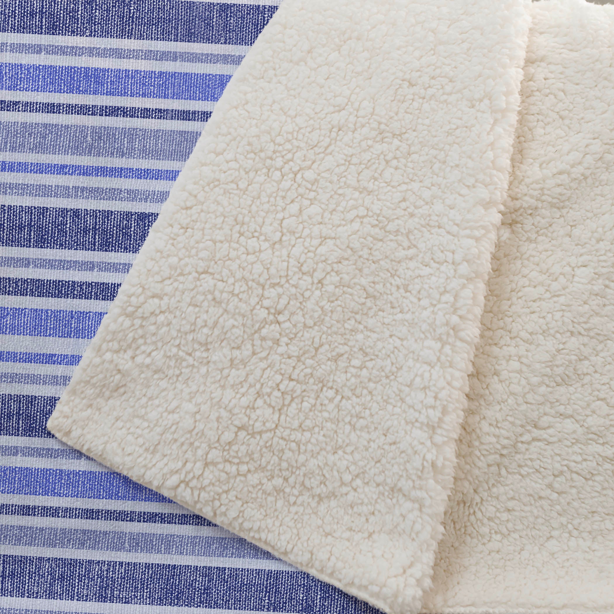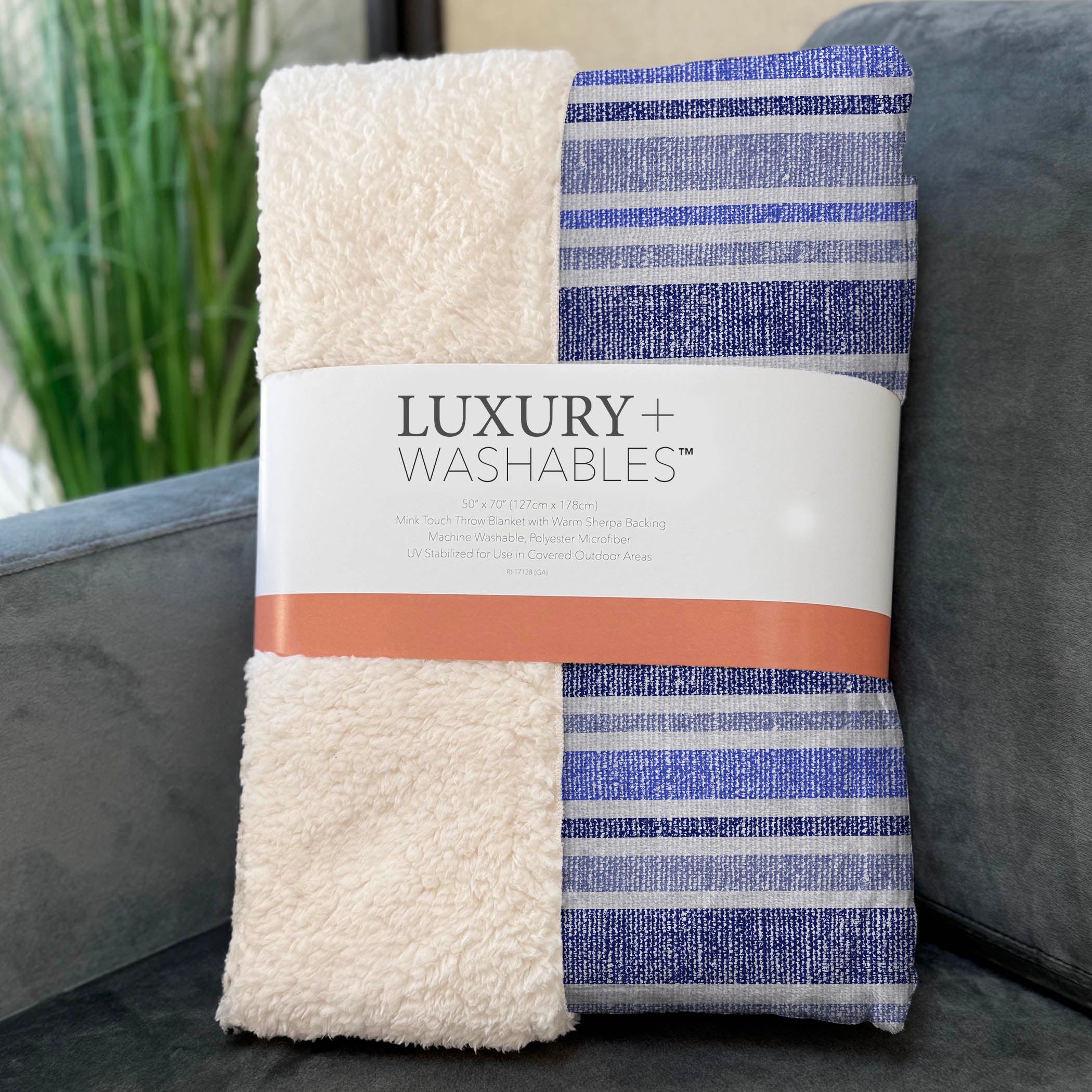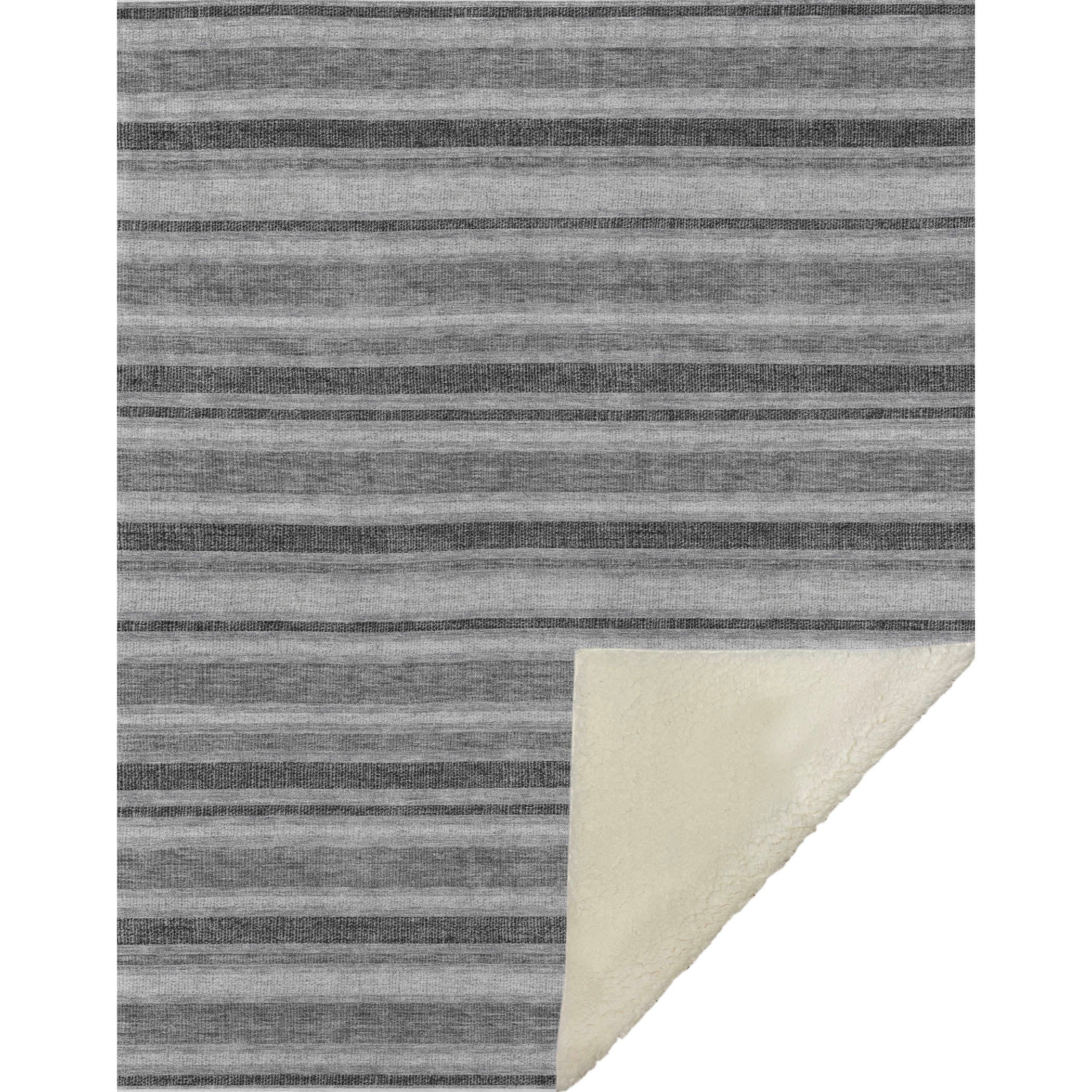 Bring a burst of vitality to any room with eye-catching stripes that complement a range of colors. Tailored in a transitional style, it integrates smoothly with diverse decor palettes, adding a dynamic touch to your space. Generously proportioned at 50" x 70", it boasts a luxuriously soft-touch front with a cozy sherpa backing, made from fade-resistant polyester microfiber ideal for both indoor and covered outdoor areas, while premium machine washable quality guarantees effortless care.