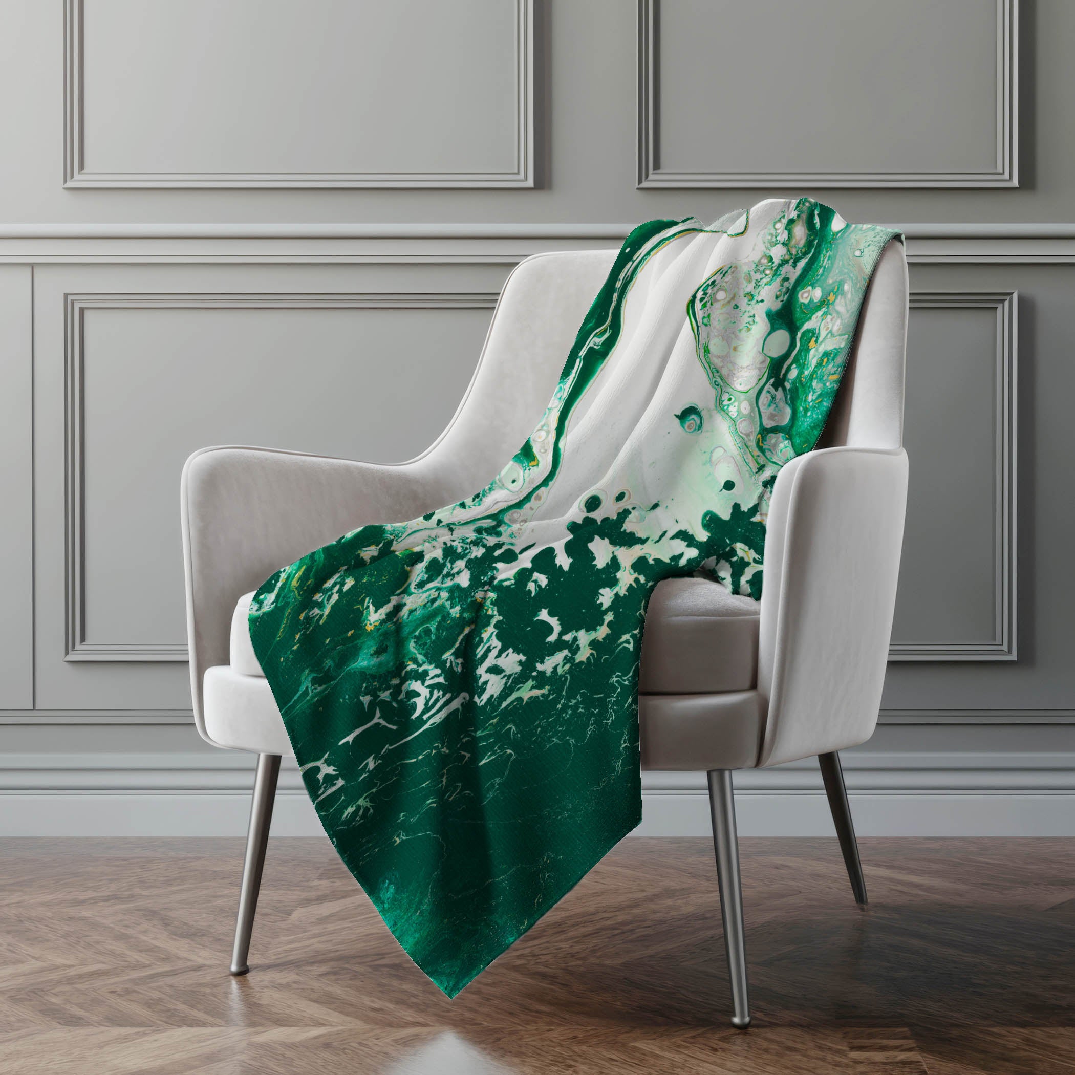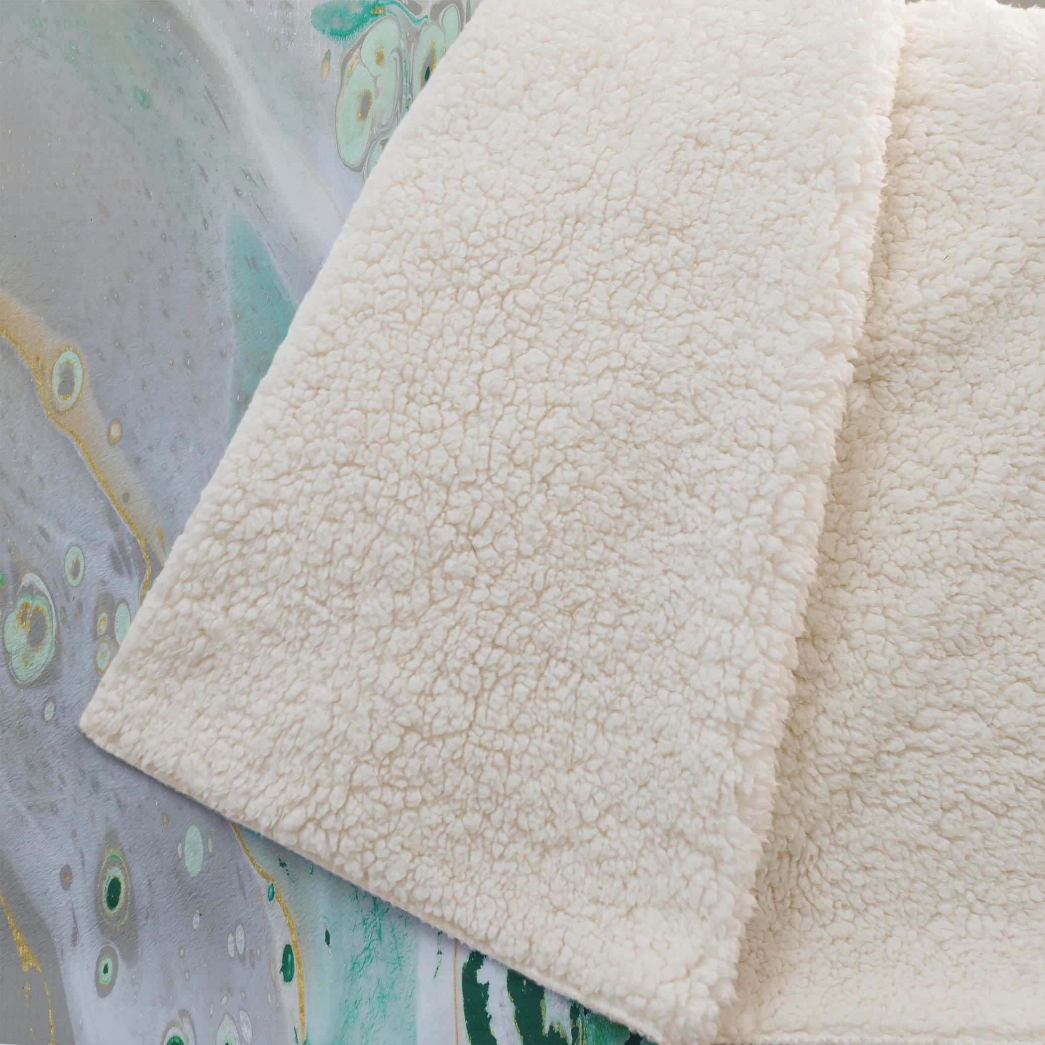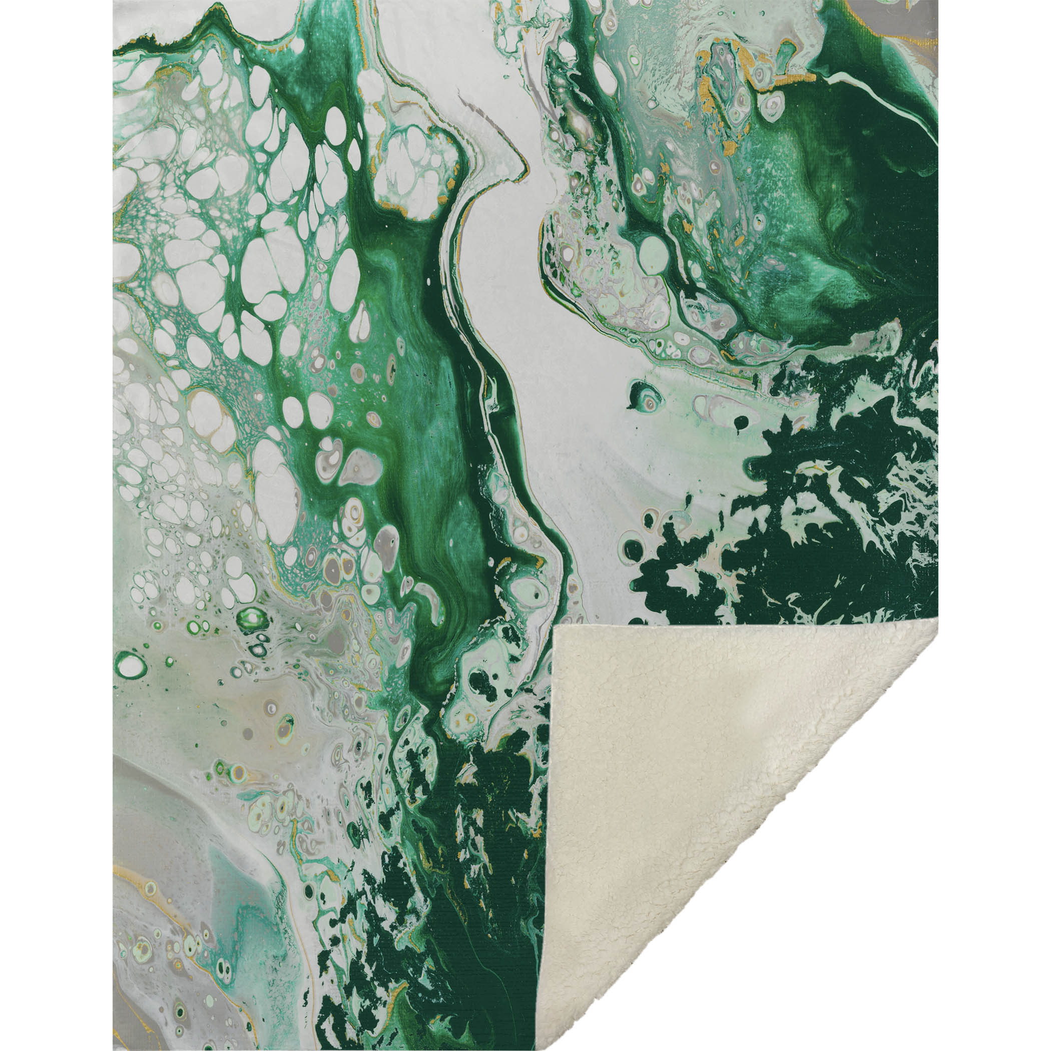 Journey into the world of contemporary artistry with a design that reflects the allure of abstract acrylic paint pours. Spanning a generous 50" x 70" inches, this piece offers not only visual marvel but supreme tranquility with its lush soft-touch front paired harmoniously with a sherpa backing for warmth. Engineered with fade-resistant polyester microfiber, it's perfect for adorning your indoor spaces or covered outdoor retreats, while its easy machine-washable nature promises simplicity in maintenance.