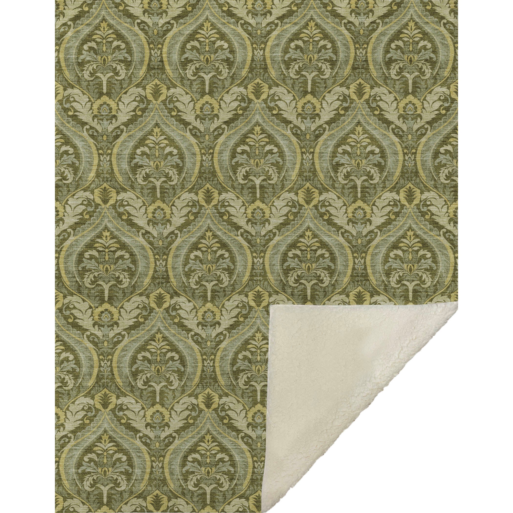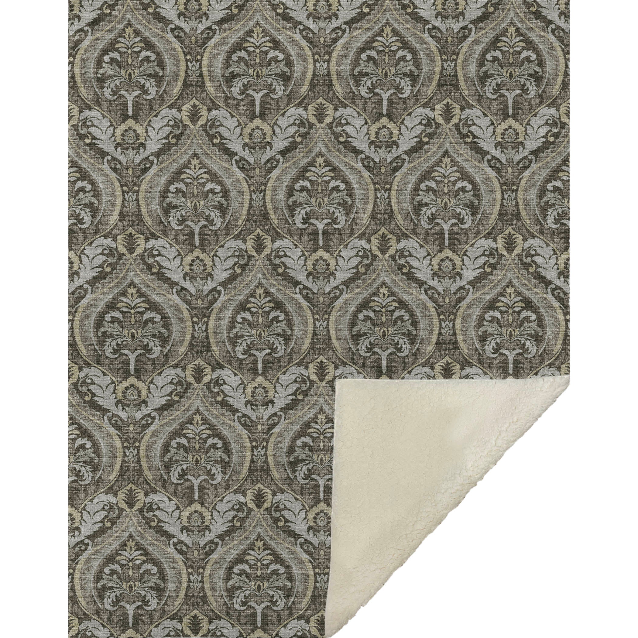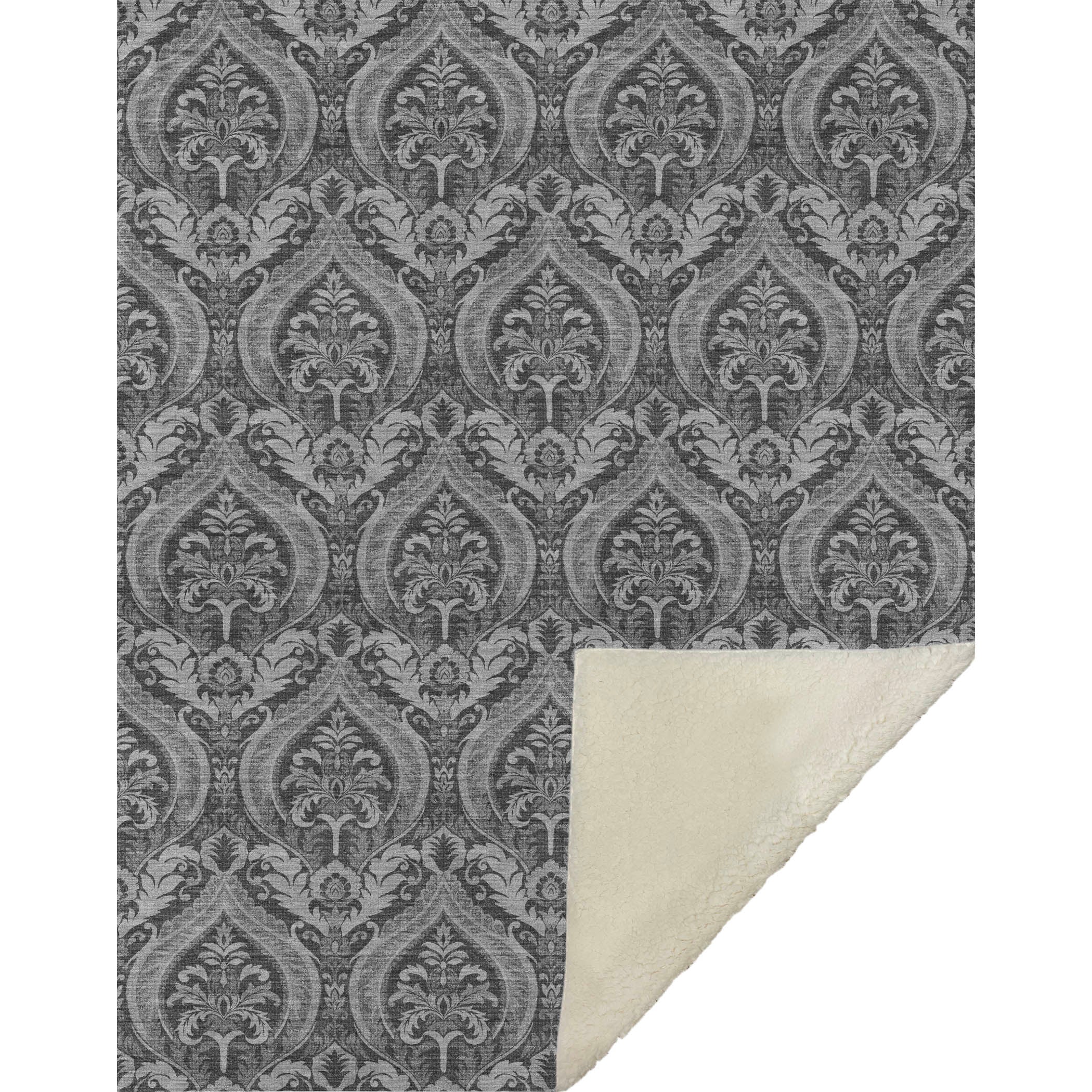 Step into a world where formal damask-like motifs weave timeless beauty into your space, offering a fusion of classic and contemporary charm. Measuring an expansive 50" x 70", it offers an inviting blend of a luxuriously soft-touch front and a warm sherpa backing, perfect for enveloping you in coziness. Meticulously crafted from fade-resistant polyester microfiber, it's superb for indoor and covered outdoor settings, with the added benefit of being machine washable for convenient care.