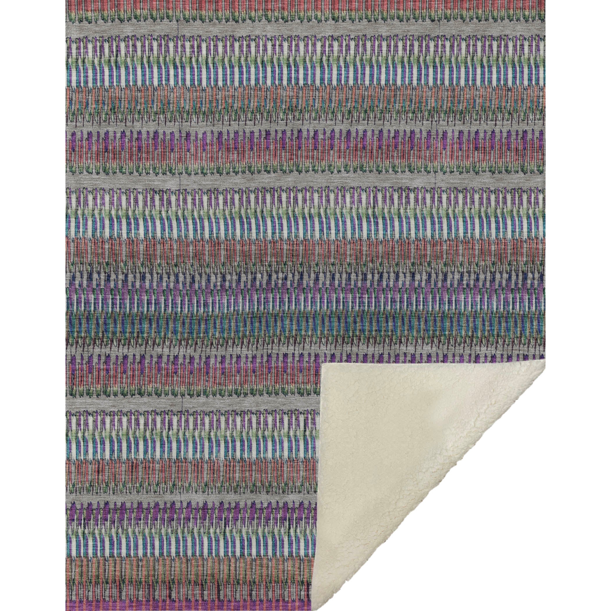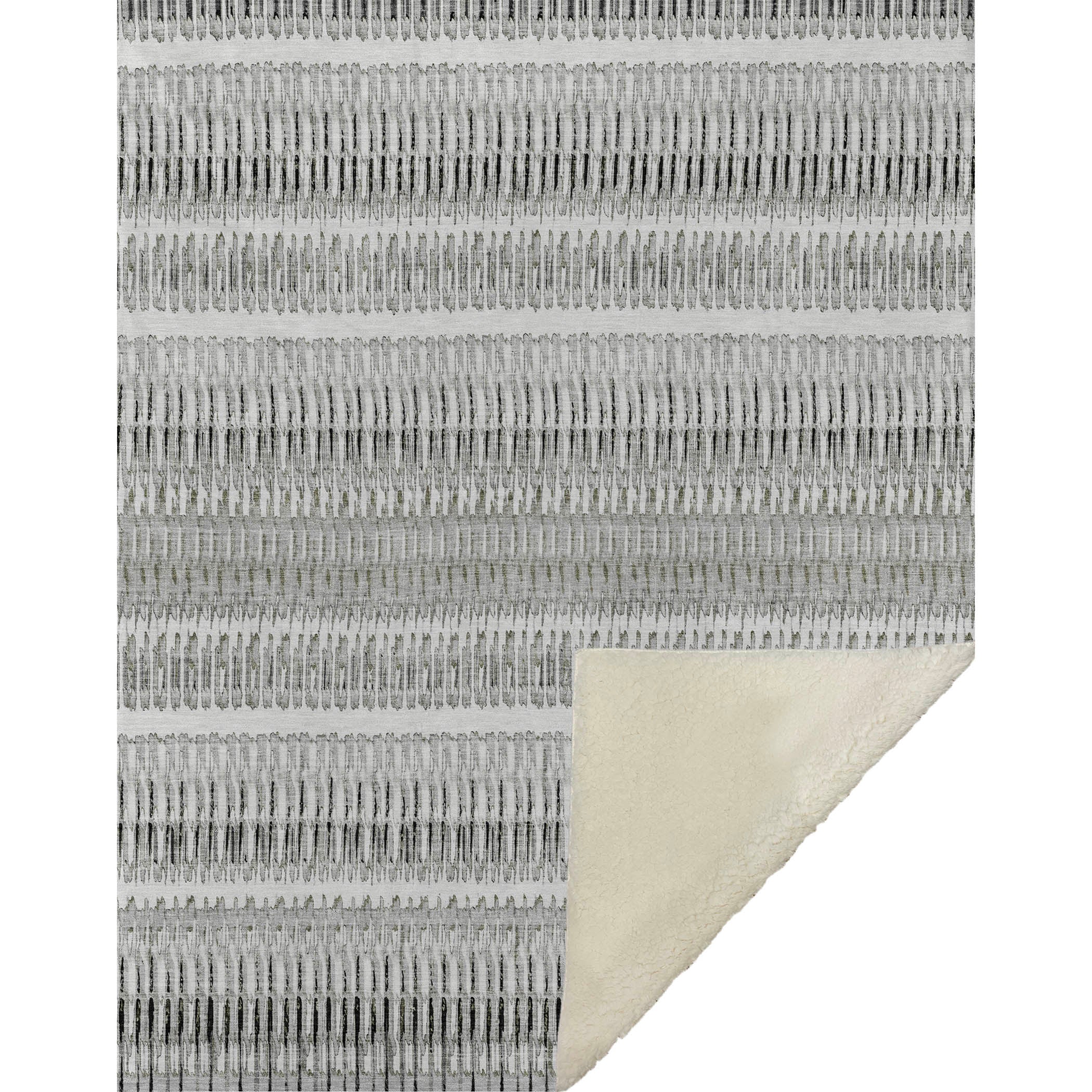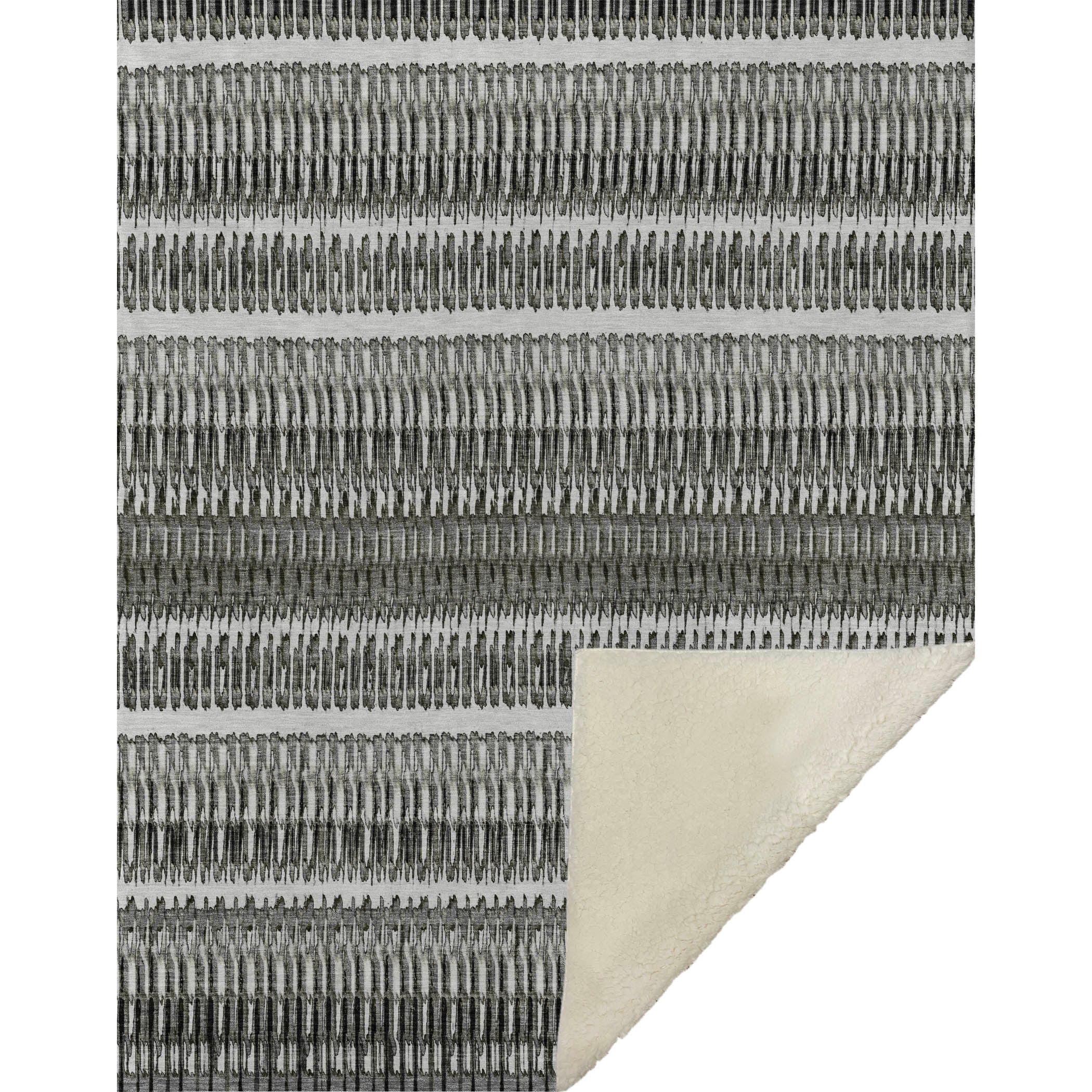 Uncover the allure of transitional style with a design that presents broken lines as charming horizontal stripes. The generously oversized 50" x 70" dimensions cradle you in luxury, thanks to a soft-touch front and warm sherpa backing that ensures unparalleled comfort. Made from fade-resistant polyester microfiber, it's perfectly suited for indoor and covered outdoor use, while its premium machine washable quality guarantees carefree maintenance.