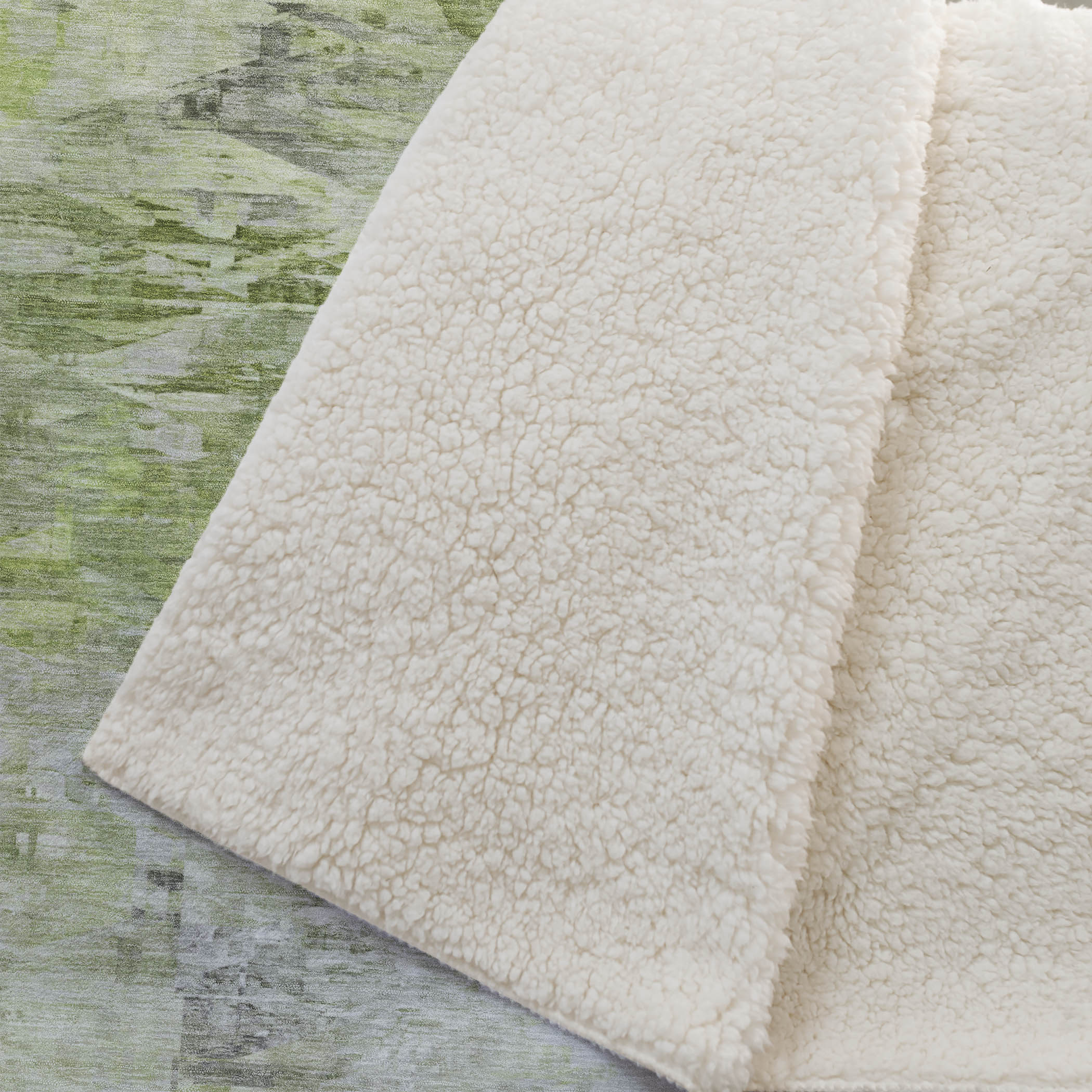 Immerse yourself in the modern allure of fragmented shapes, offering visual intrigue with a transitional style that complements any home decor. Every inch of the generous 50" x 70" size envelops you in the luxurious embrace of its soft-touch front and cozy sherpa backing. Fade-resistant polyester microfiber ensures its beauty endures whether used indoors or in covered outdoor settings, while its premium machine washable design guarantees effortless maintenance.